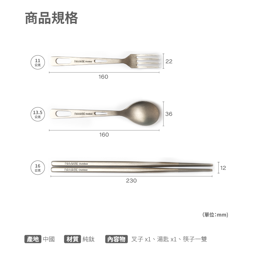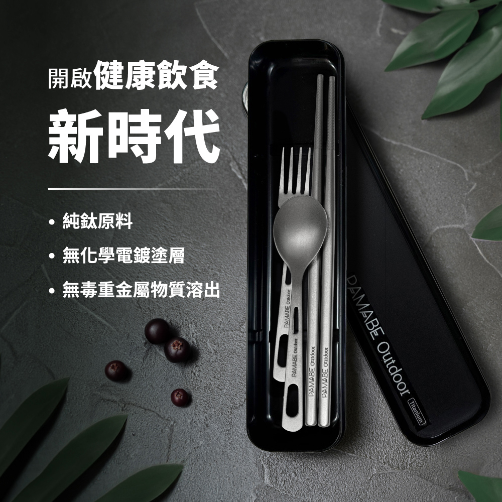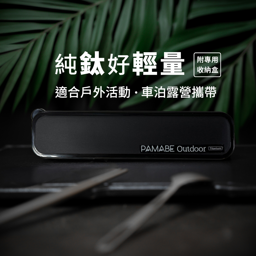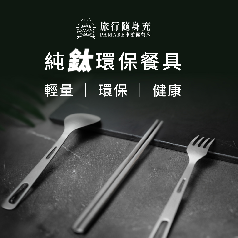【PAMABE OUTDOOR】鈦環保餐具-三件組附盒附袋(露營/外出餐具/攜帶型/環保/筷叉組/車泊)