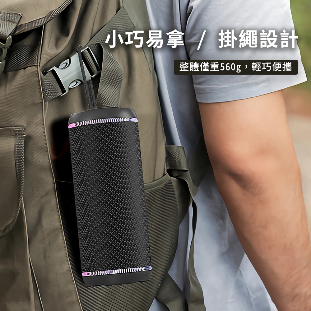 重量僅 560g,搭配實用掛繩設計,讓你輕鬆隨身攜帶。外出旅行、運動或露營都能帶上它,隨時享受專屬音樂氛圍。小巧外型卻能帶來滿滿驚喜。