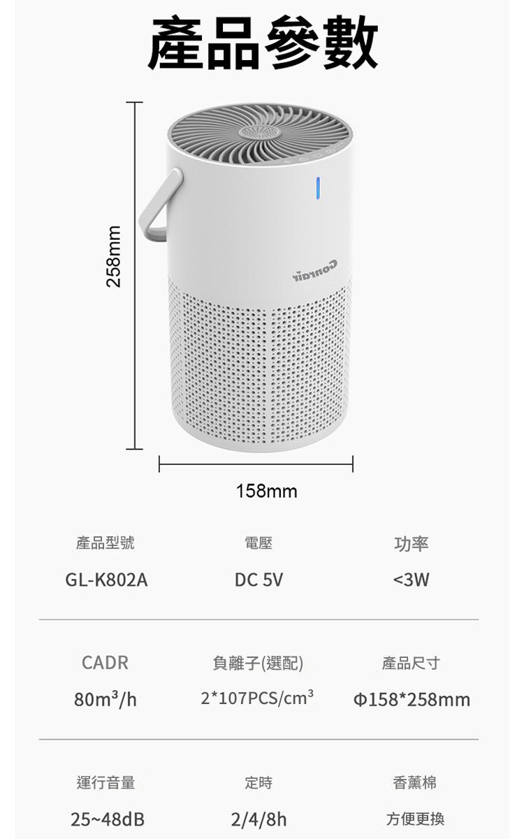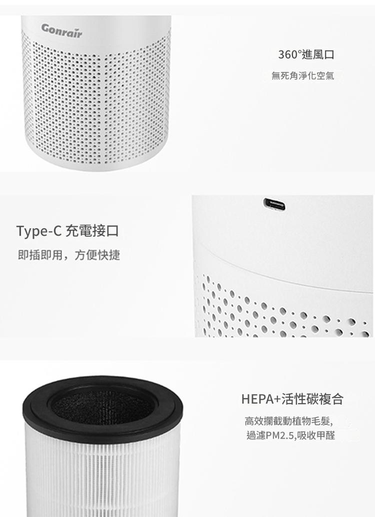 【沁仕家】桌面空氣清凈機 158*158*258mm凈化機(3檔風速 觸摸按鈕 便攜提手 空氣清新機 凈化器 凈味器)