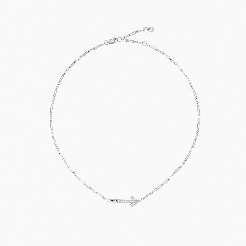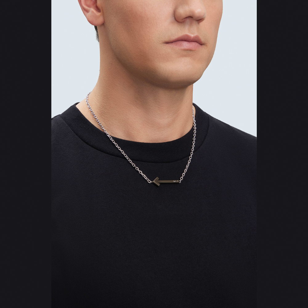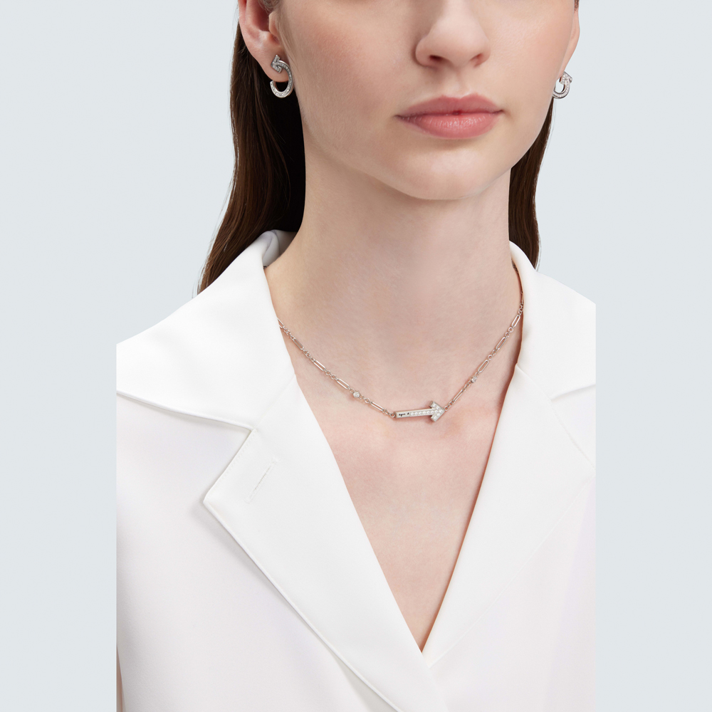 這款項鍊是以 "Arrow" 主題設計。採用經拋光及刷痕處理的鍍18K白金及18K黃金白鋼製成,