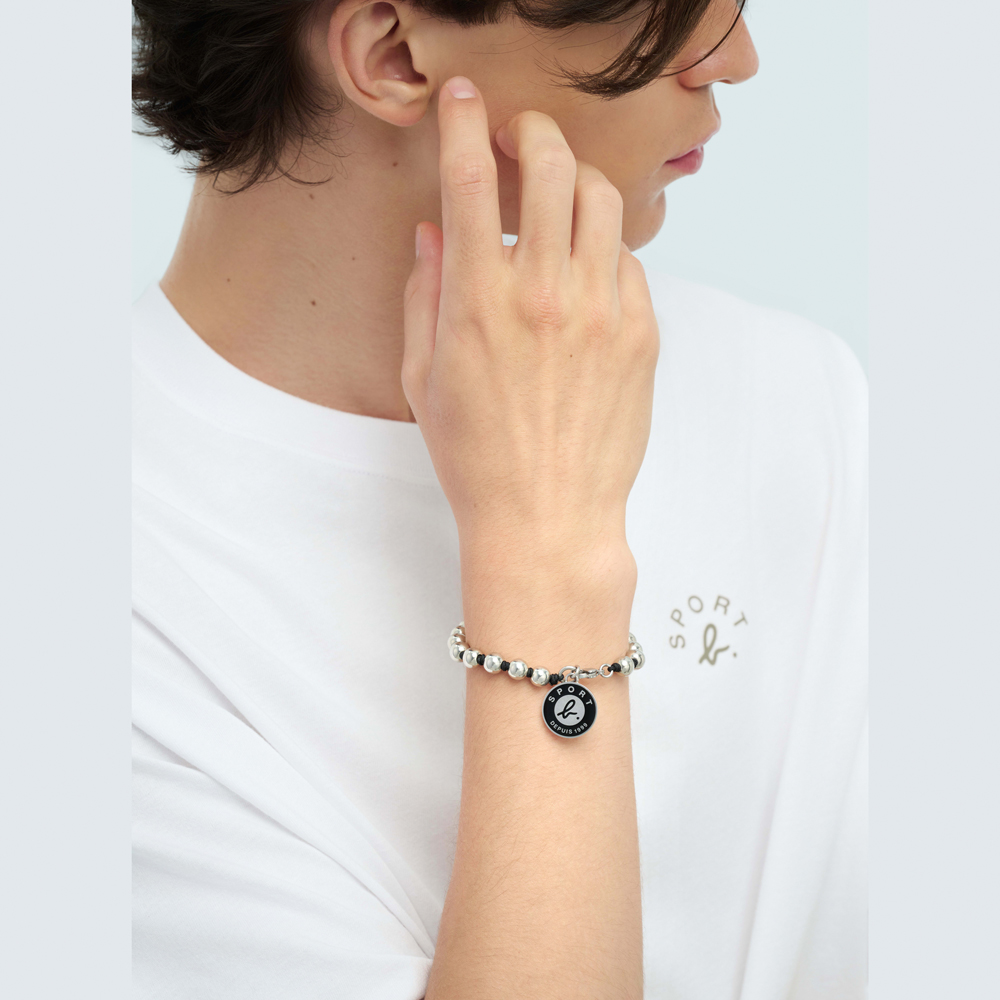 【agnes b.】Sport b. 圓牌 串飾 手鏈(黑色)
