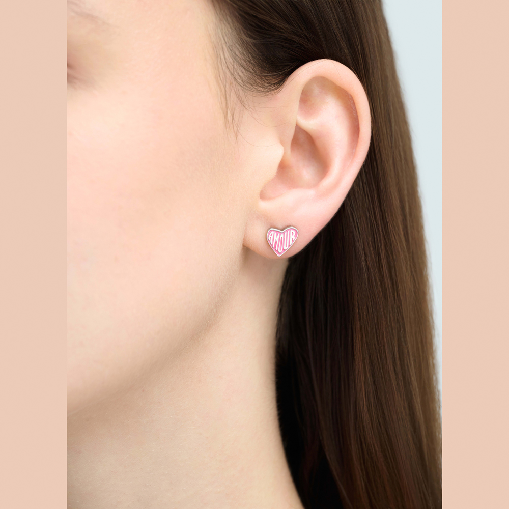 【agnes b.】Sport b. Amour 心形 耳環(粉色)