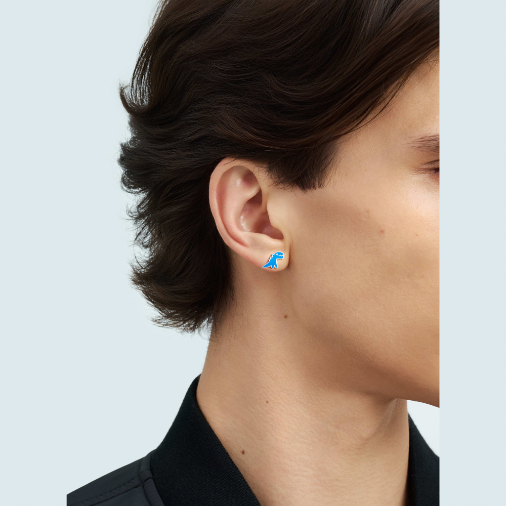 18K白金電鍍白鋼恐龍耳環,半拋光飾面配黑色琺瑯細節。這結合玩味設計與電鍍技術,光澤歷久常新。