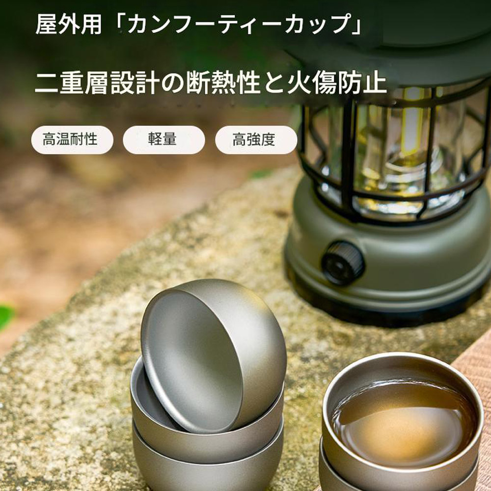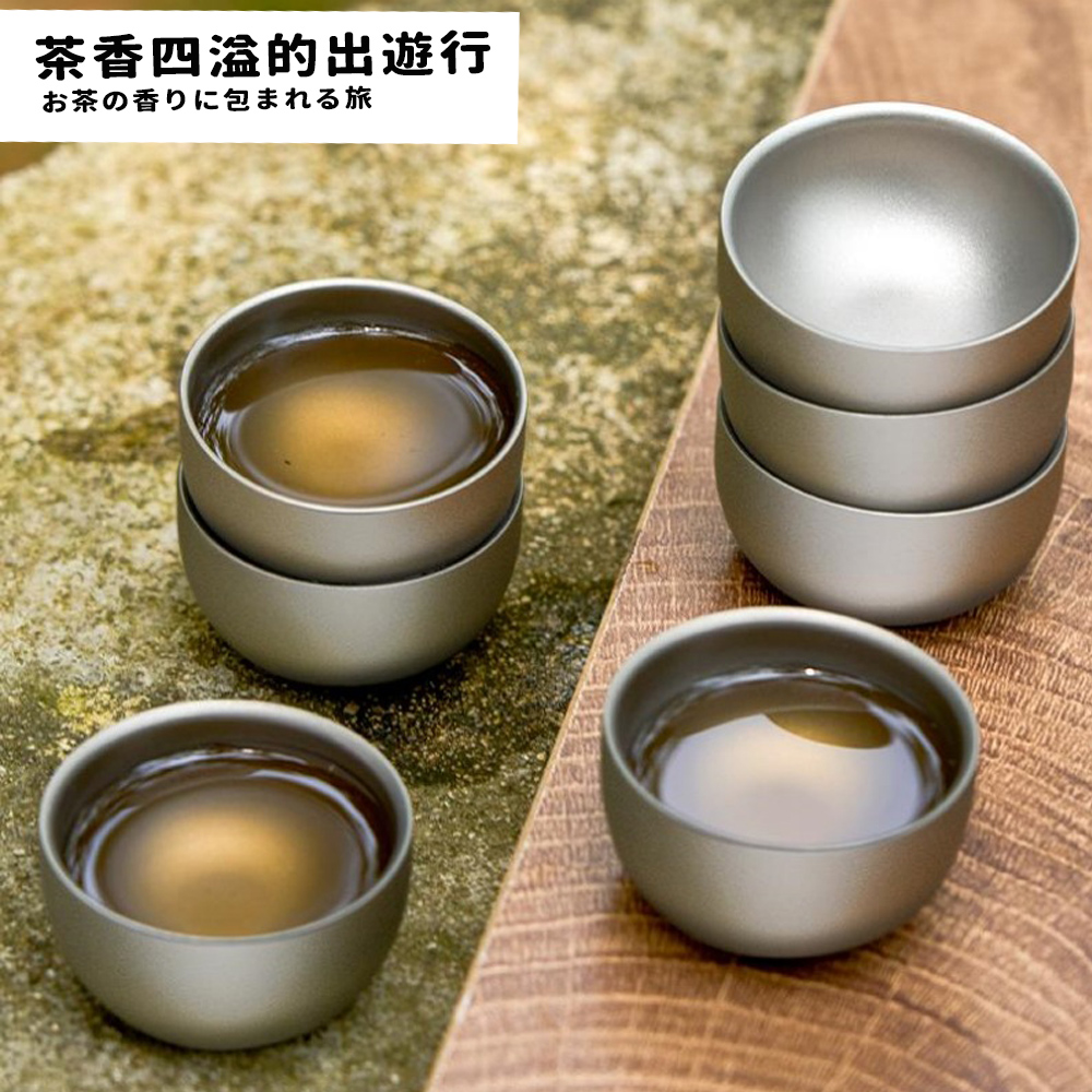 【Tihow 鈦好】日式匠人質感雙層隔熱純鈦茶杯50ml 2入組(主人杯 品茗杯 長輩禮物 純鈦茶杯組)