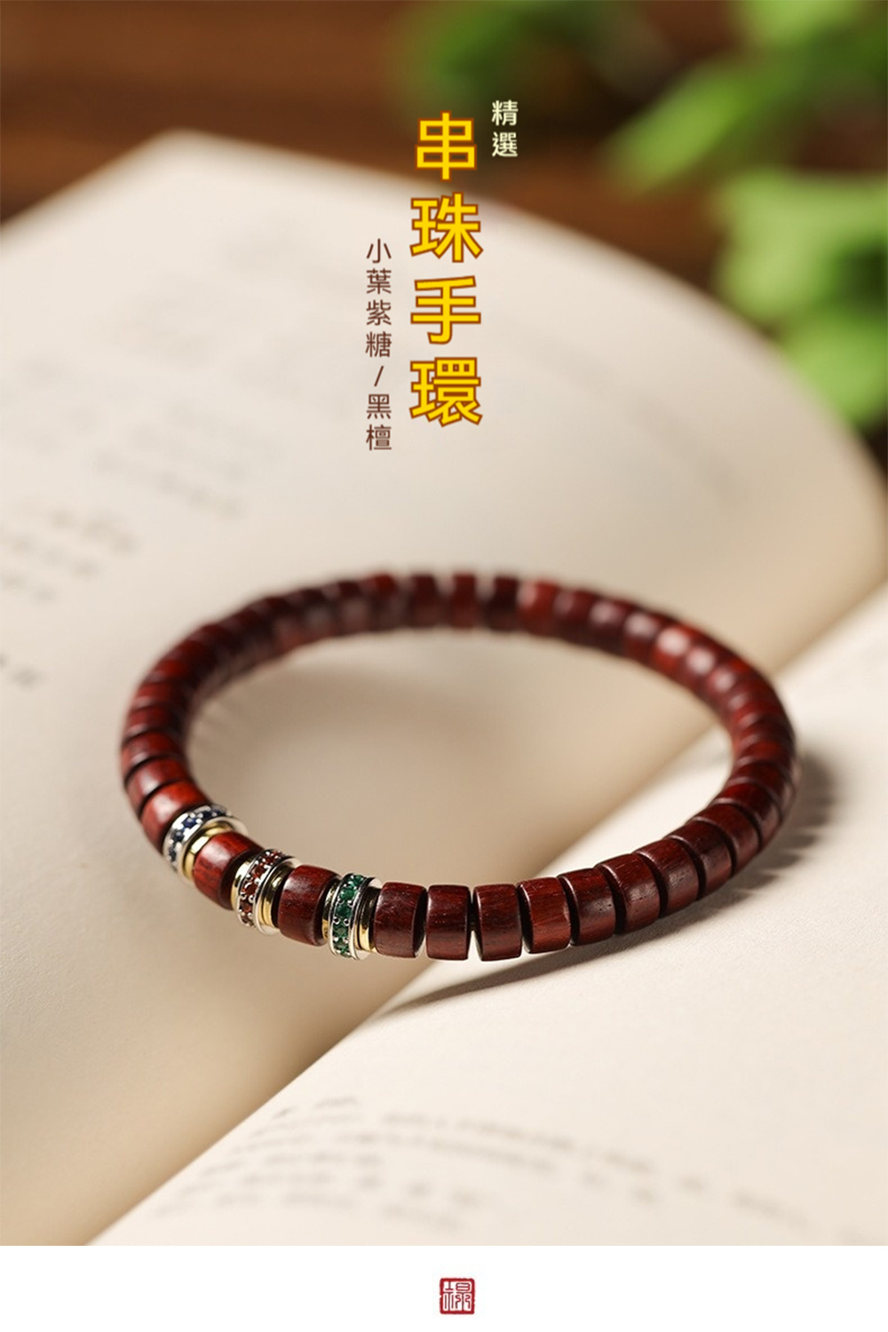 【MoonDy】雙11 小葉紫檀手串 串珠手鍊 直切藥片珠 黑檀木手串 佛珠手環 文玩飾品