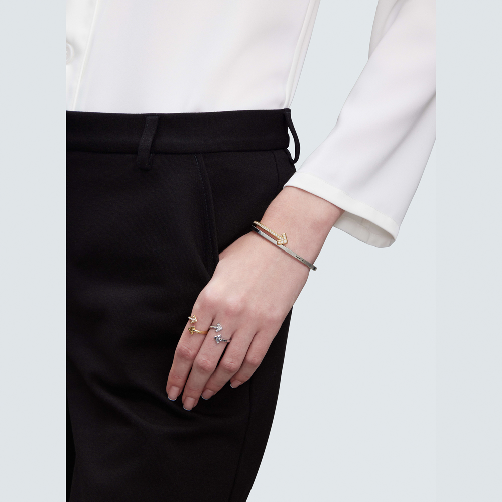 綴以箭頭形狀及水晶,創造簡單純粹的形象。