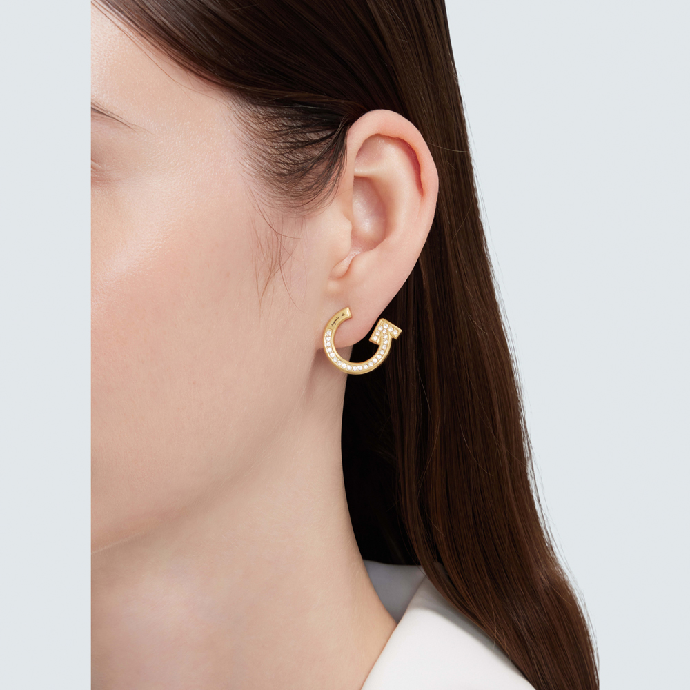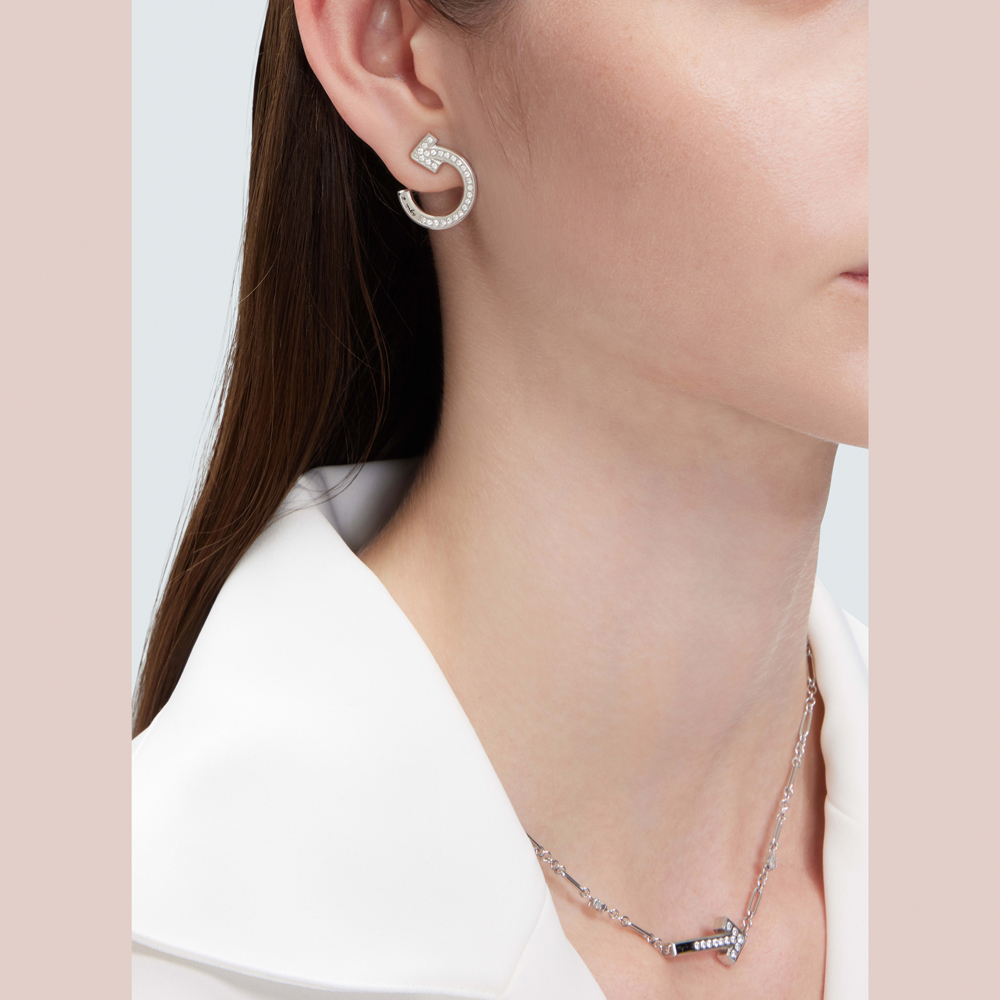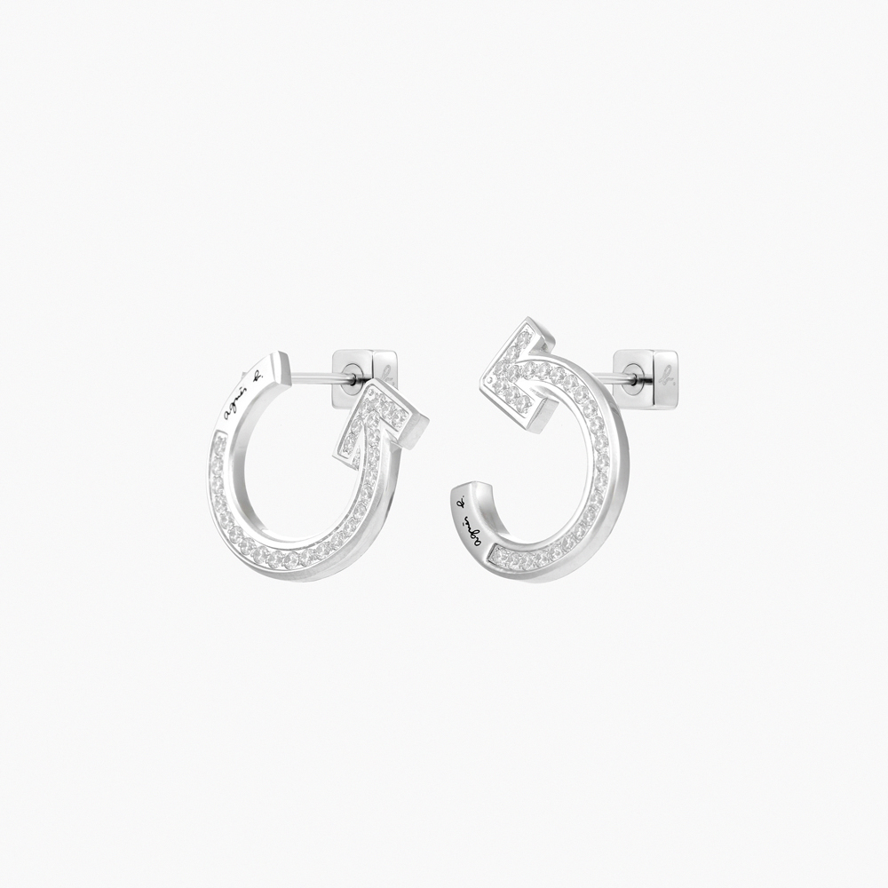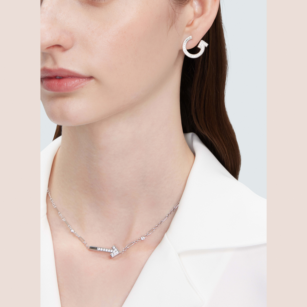 這款耳環是以 "Arrow" 主題設計。採用經拋光及刷痕處理的鍍18K白金白鋼製成,