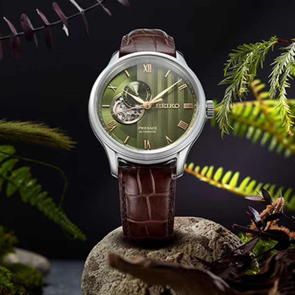 【Seiko Presage 庭園系列「落羽松」台灣限定腕錶】 2025年台灣限定款將日式美學與寶島的自然風光巧妙結合,以台灣自然風景「落羽松」為靈感, 落羽松在台灣象徵四季更迭與生命力,其葉色隨季節流轉,由春天的新綠、夏日的鮮綠,到秋天的柔和金黃, 冬季則逐漸轉為銅褐,映照時間的流轉,與腕間時刻相得益彰,同時也呼應台灣四季鮮明的自然風情 。
