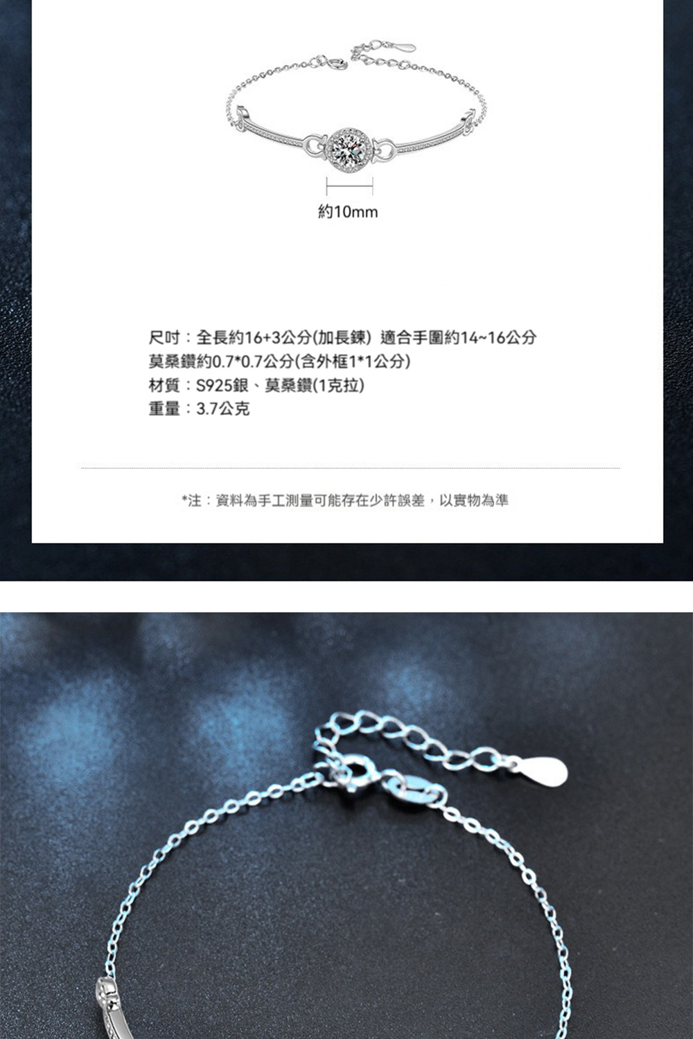 ✨ 商品尺吋:全長約16+3公分(加長鍊)、適合手圍約14~16公分、莫桑鑽約0.7*0.7公分(含外框1*1公分)