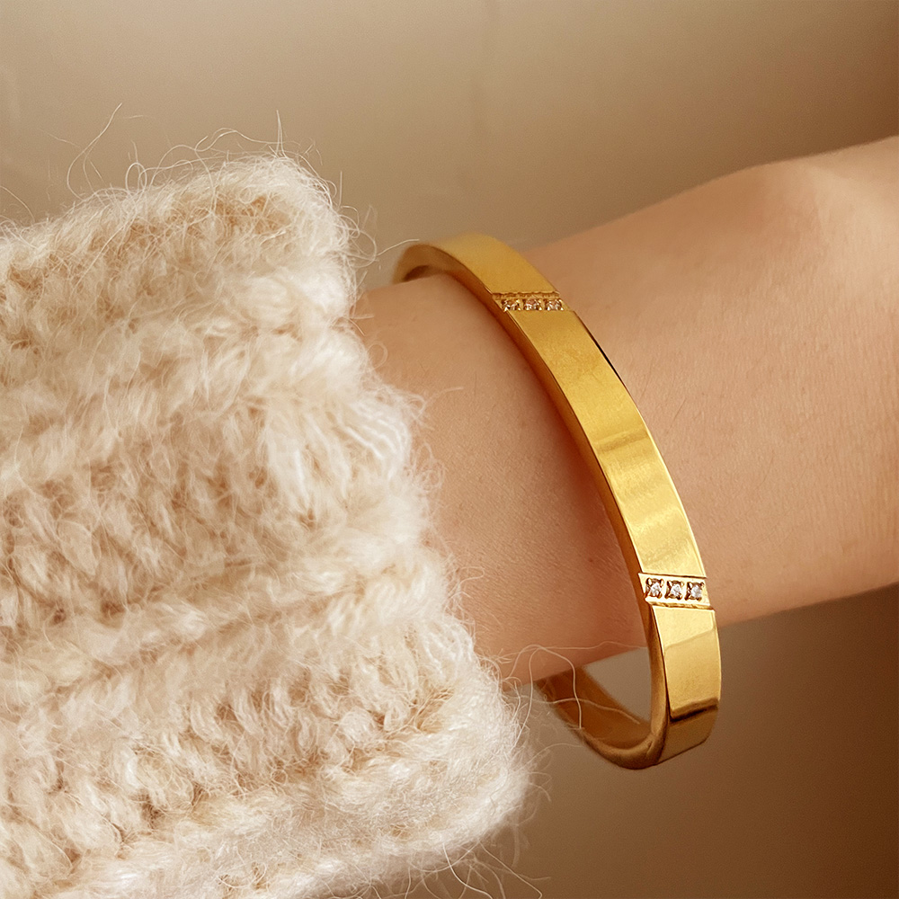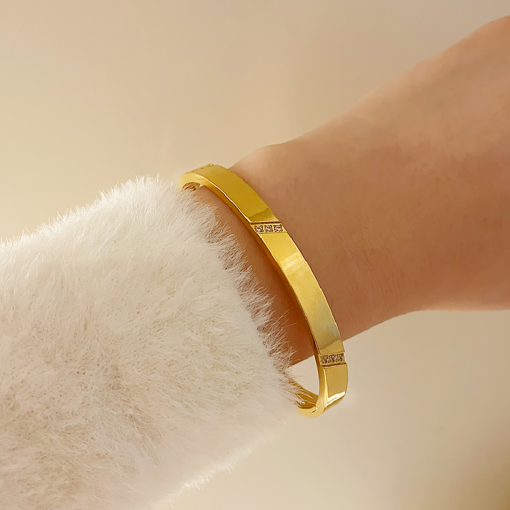 【CReAM】Tracey 簡約斜紋亮鑽水鑽金色女手環手鐲(生日 禮物 送禮 禮盒)