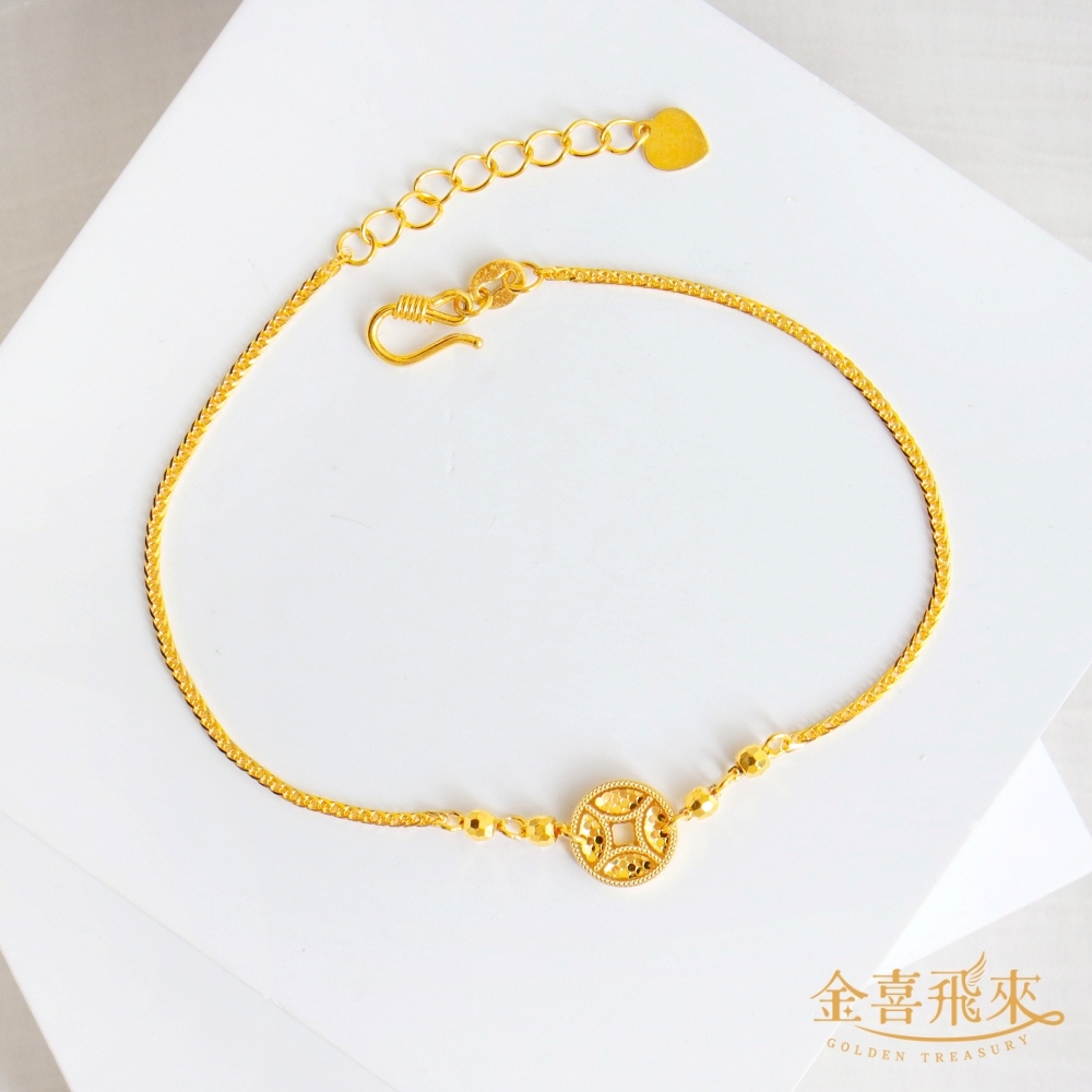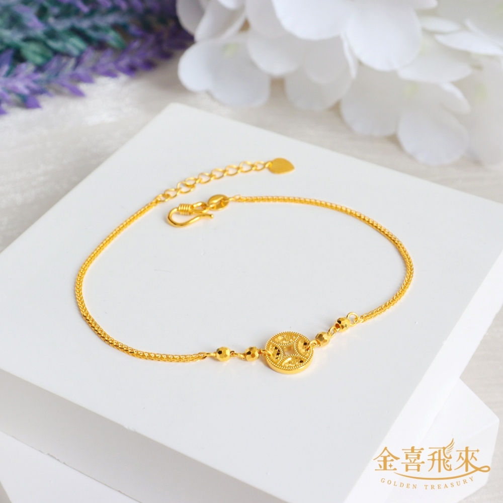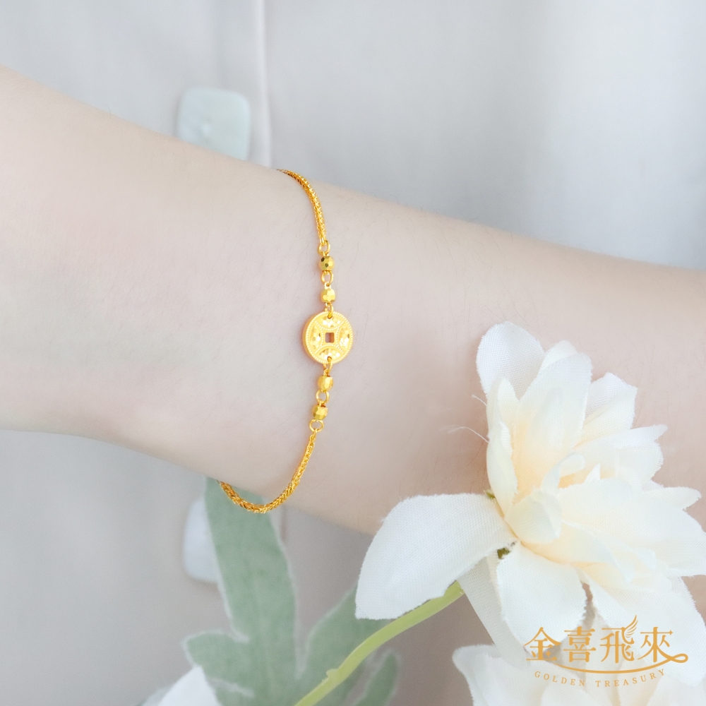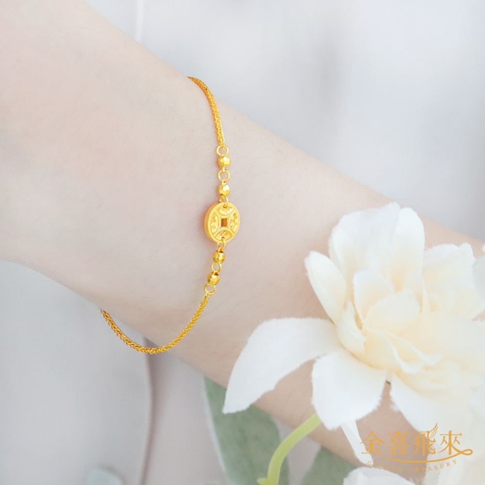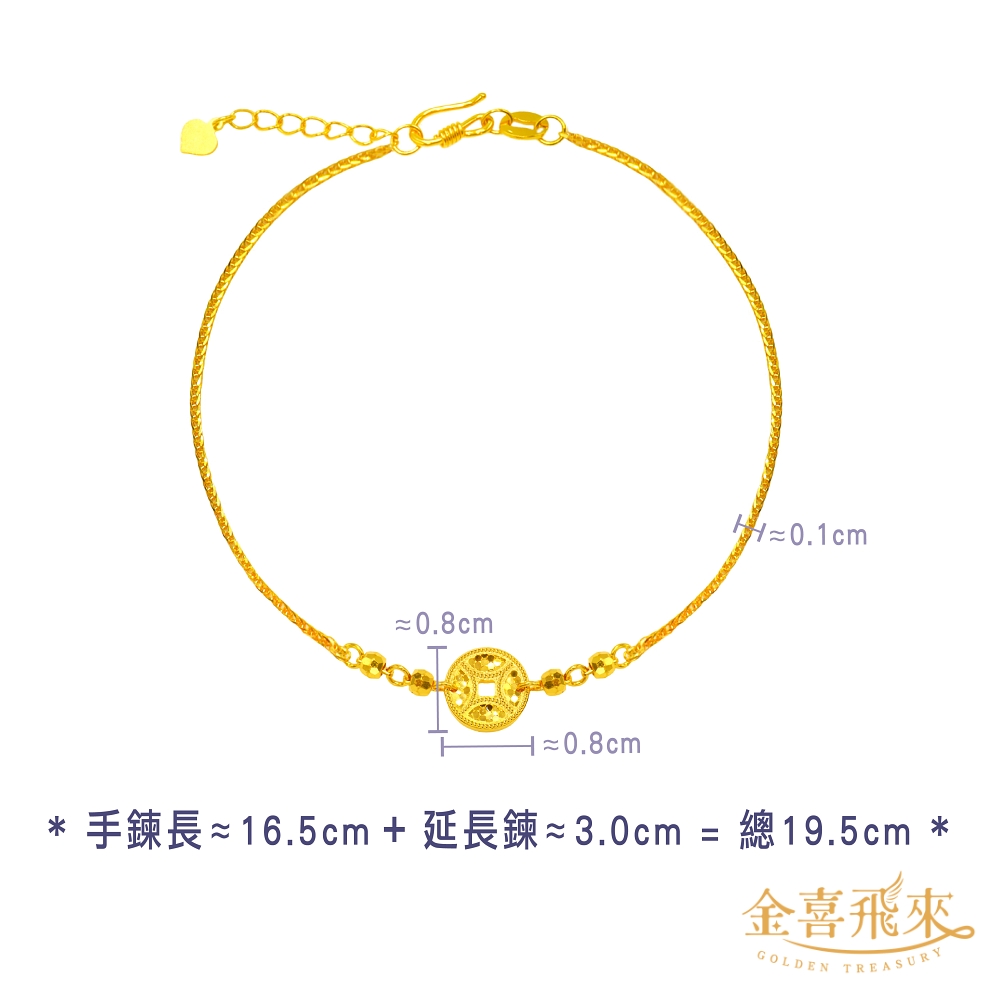 【金喜飛來】黃金手鍊源源銅錢珠(0.77錢±0.03)