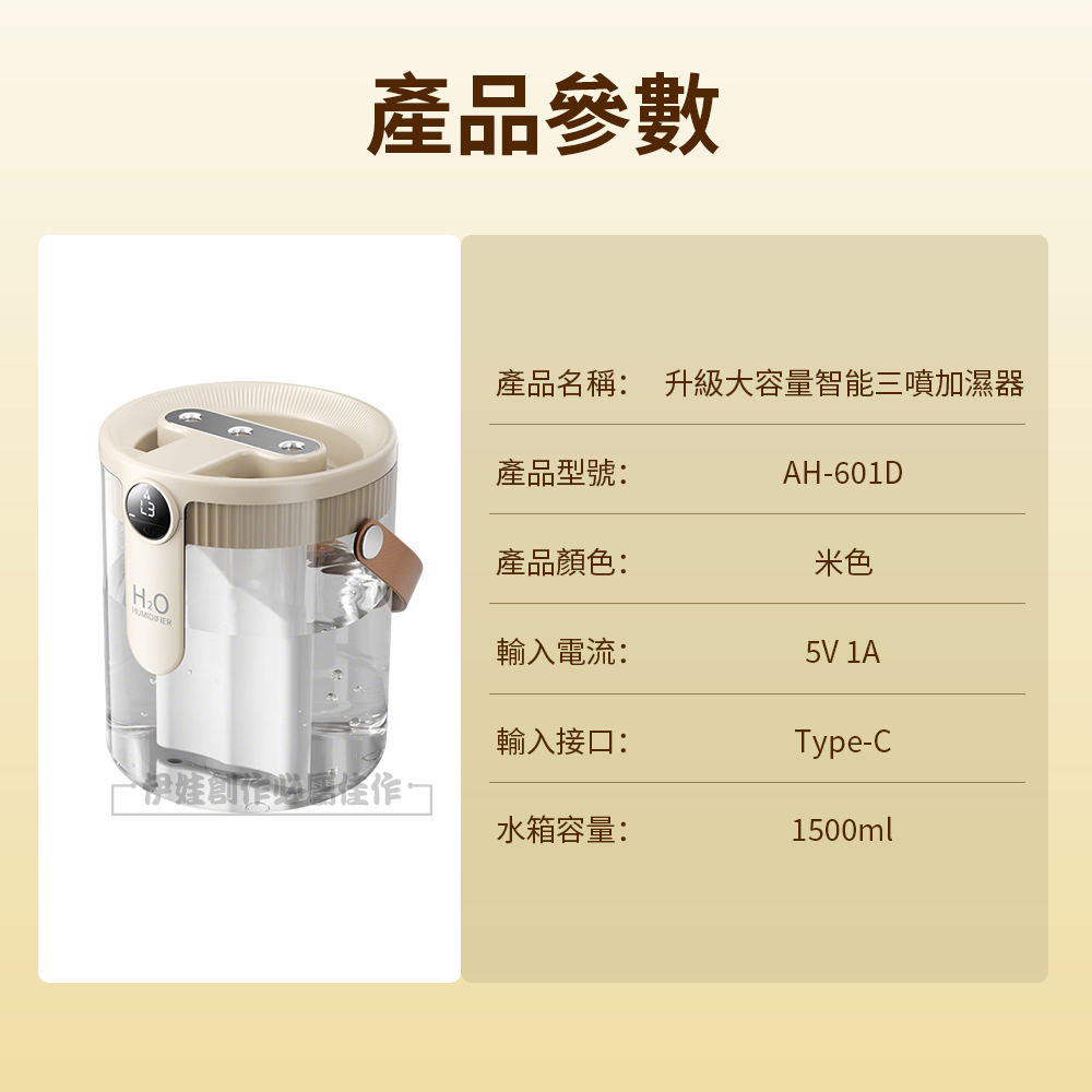 【伊德萊斯】智能三噴加濕器 1500ML 數顯濕度 納米霧化水氧機 空氣清淨機(靜音加濕機 噴霧器)
