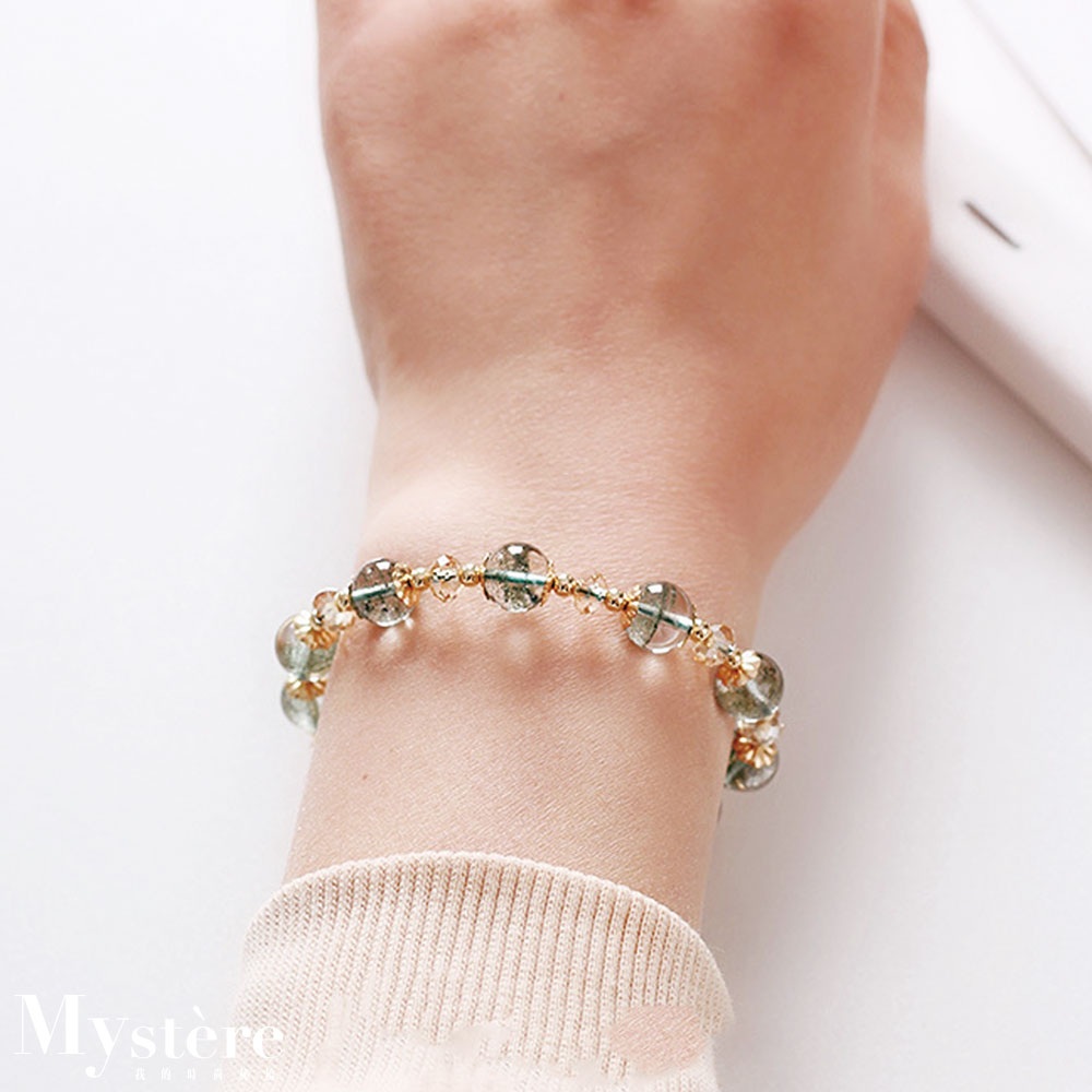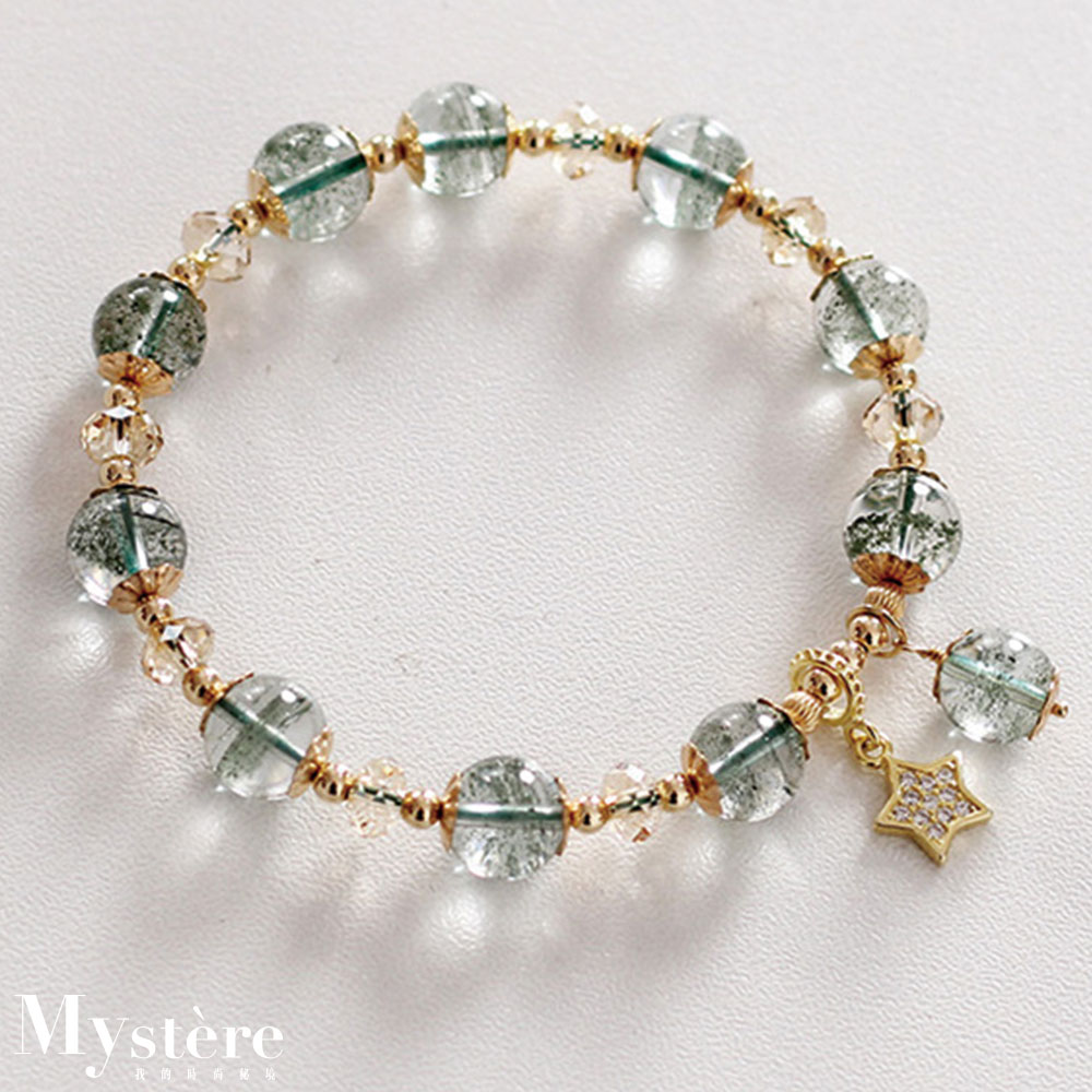 【my stere 我的時尚秘境】雙11 綠幽靈水晶星星吊墜手鍊(水晶手鍊 天然水晶手串 綠水晶 奧地利水晶)
