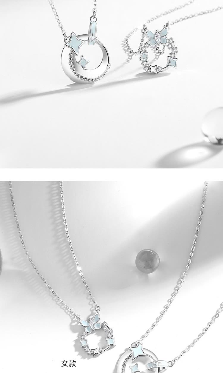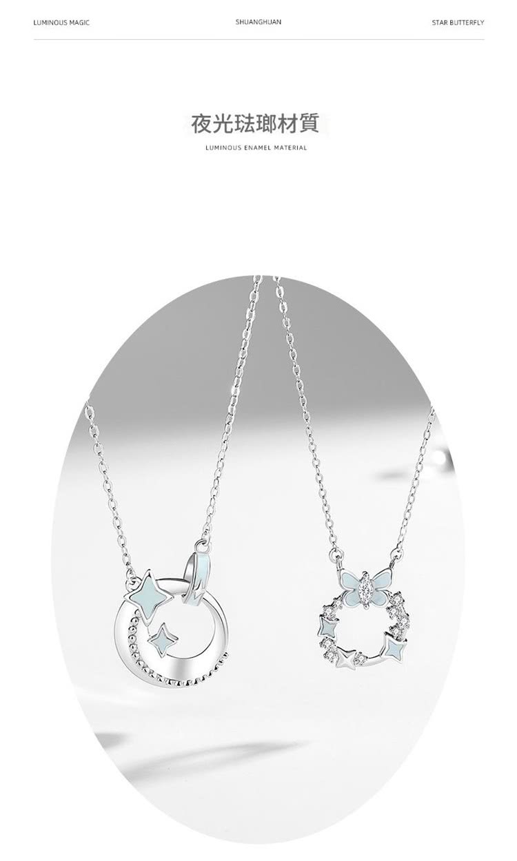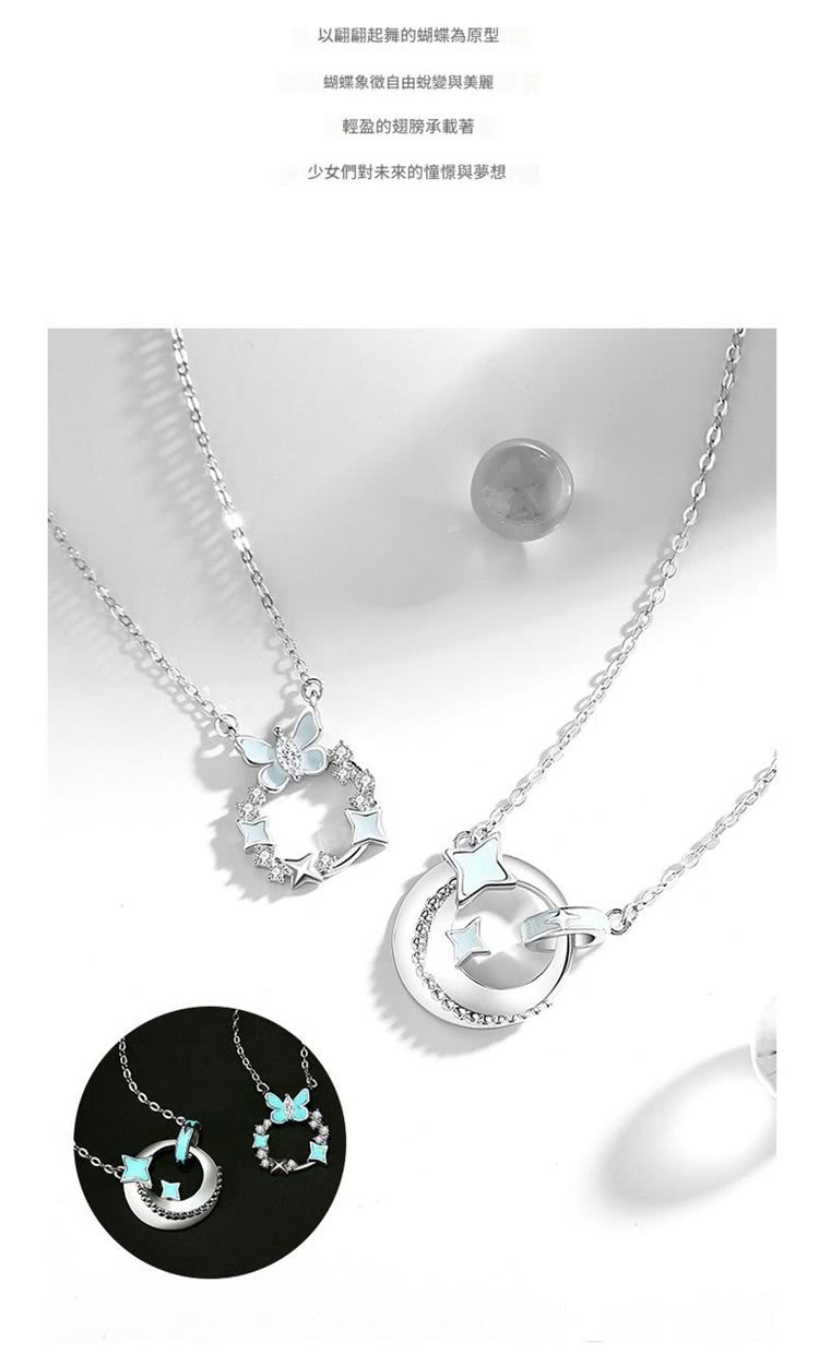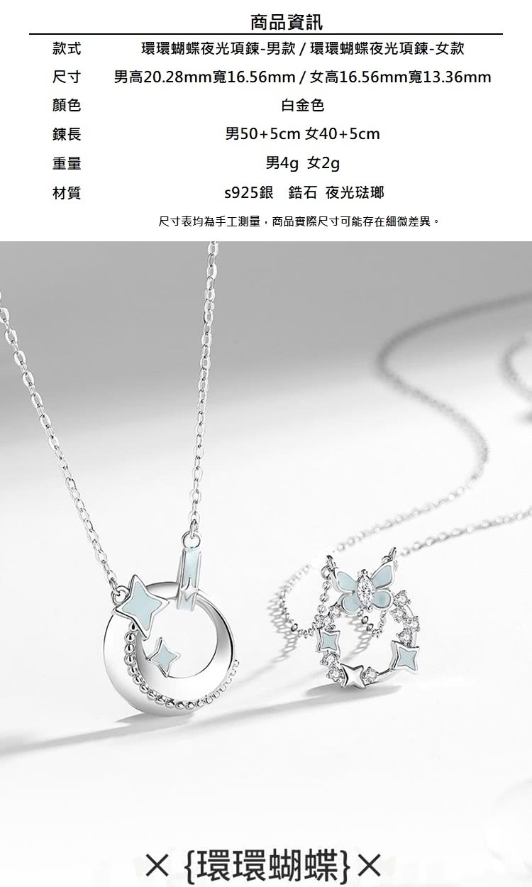 【巴黎精品】現貨+預購 頂級925純銀項鍊女項鍊項鏈鎖骨鍊情人節禮物情侶對鍊(環環蝴蝶夜光男女飾品a1li66)