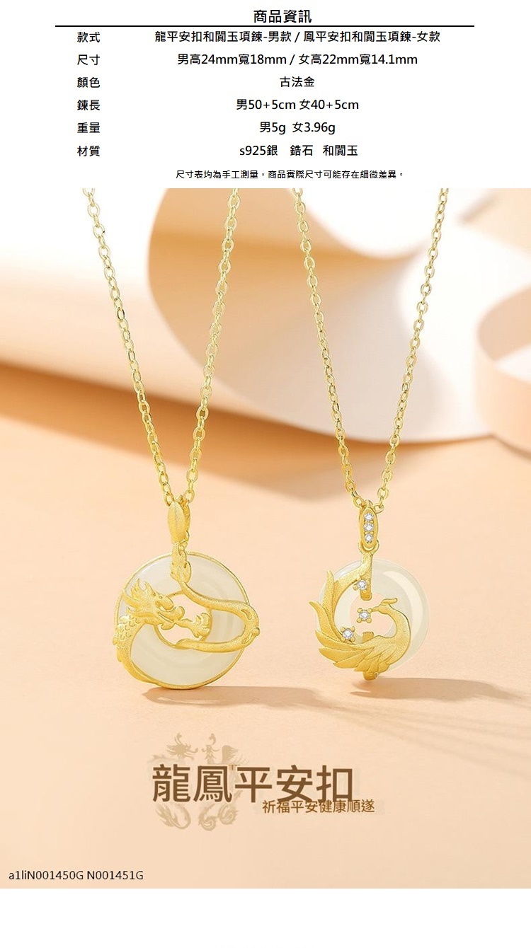 【巴黎精品】現貨+預購 頂級925純銀項鍊女項鍊項鏈鎖骨鍊情人節禮物情侶對鍊(平安扣和闐玉男女飾品a1li57)