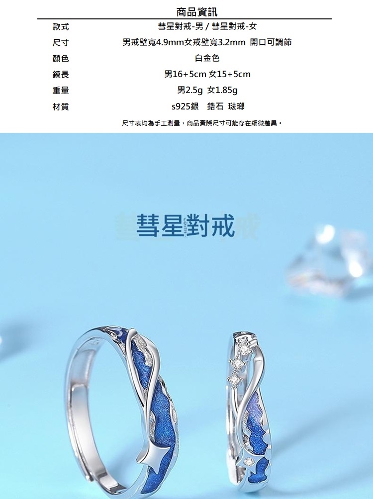 【巴黎精品】現貨+預購 頂級925純銀戒指婚戒女鑽戒開口戒情侶對戒尾戒情人節禮物(新款彗星男女飾品a1li55)