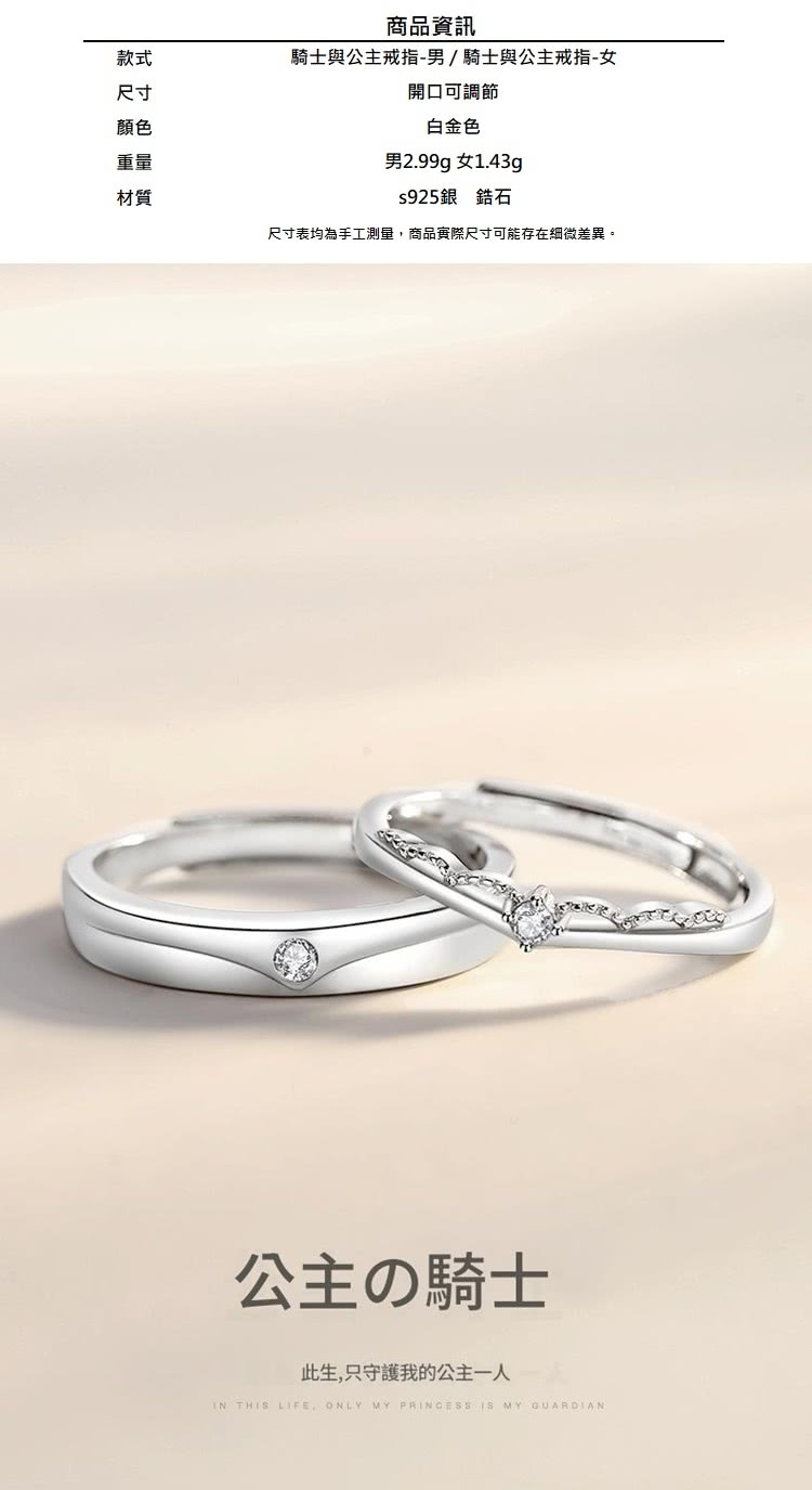 【巴黎精品】現貨+預購 頂級925純銀戒指婚戒女鑽戒開口戒情侶對戒尾戒情人節禮物(騎士公主男女飾品a1li47)
