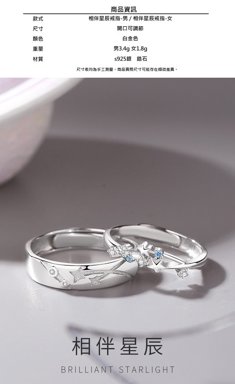 【巴黎精品】現貨+預購 頂級925純銀戒指婚戒女鑽戒開口戒情侶對戒尾戒情人節禮物(相伴星辰男女飾品a1li45)