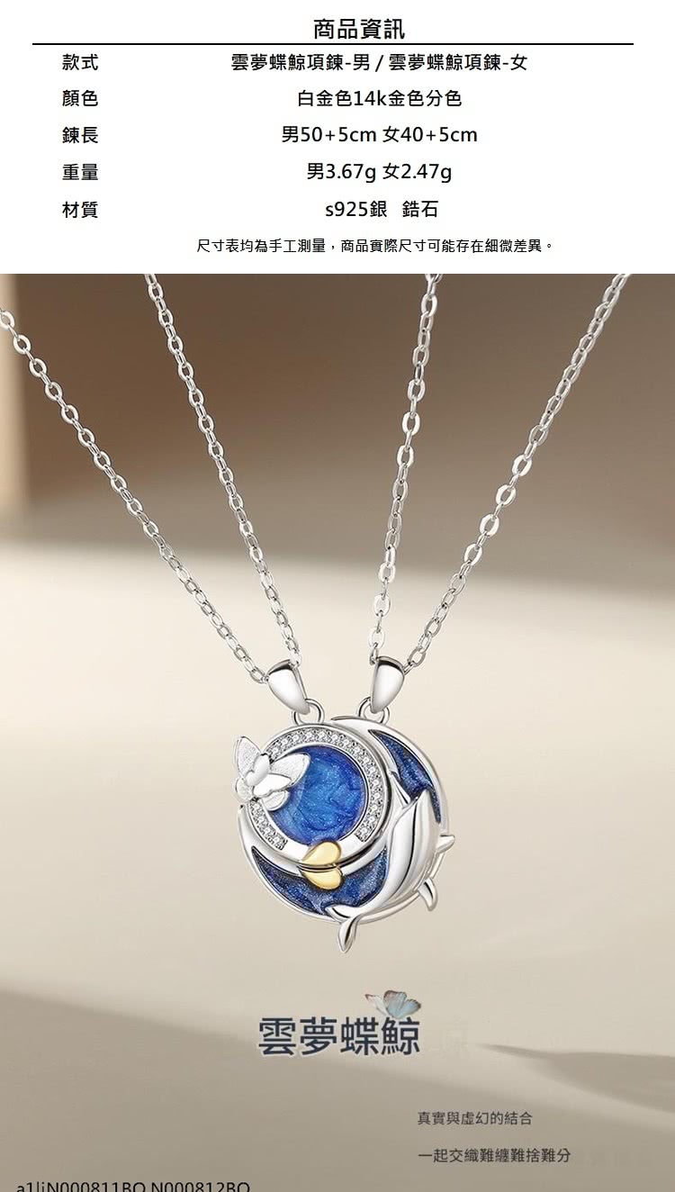 【巴黎精品】現貨+預購 頂級925純銀項鍊女項鍊項鏈鎖骨鍊情人節禮物情侶對鍊(雲夢蝶鯨男女飾品a1li41)
