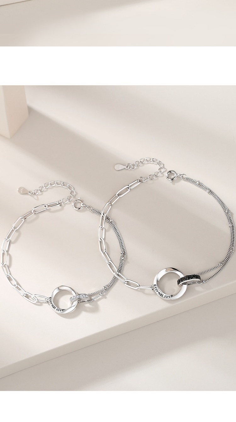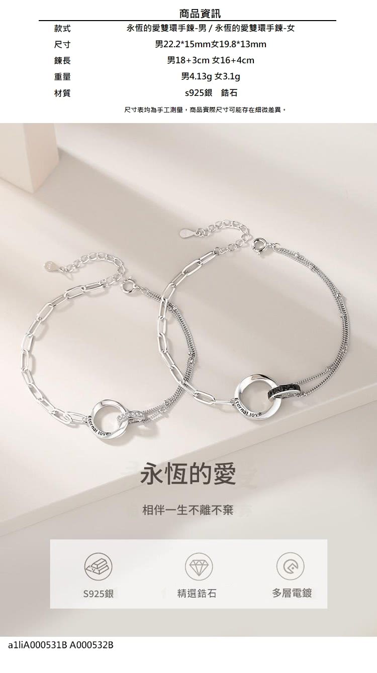 【巴黎精品】現貨+預購 頂級925純銀手鍊情侶手鏈女首飾情人節禮物(永恆的愛雙環情侶手鍊男女飾品a1li38)