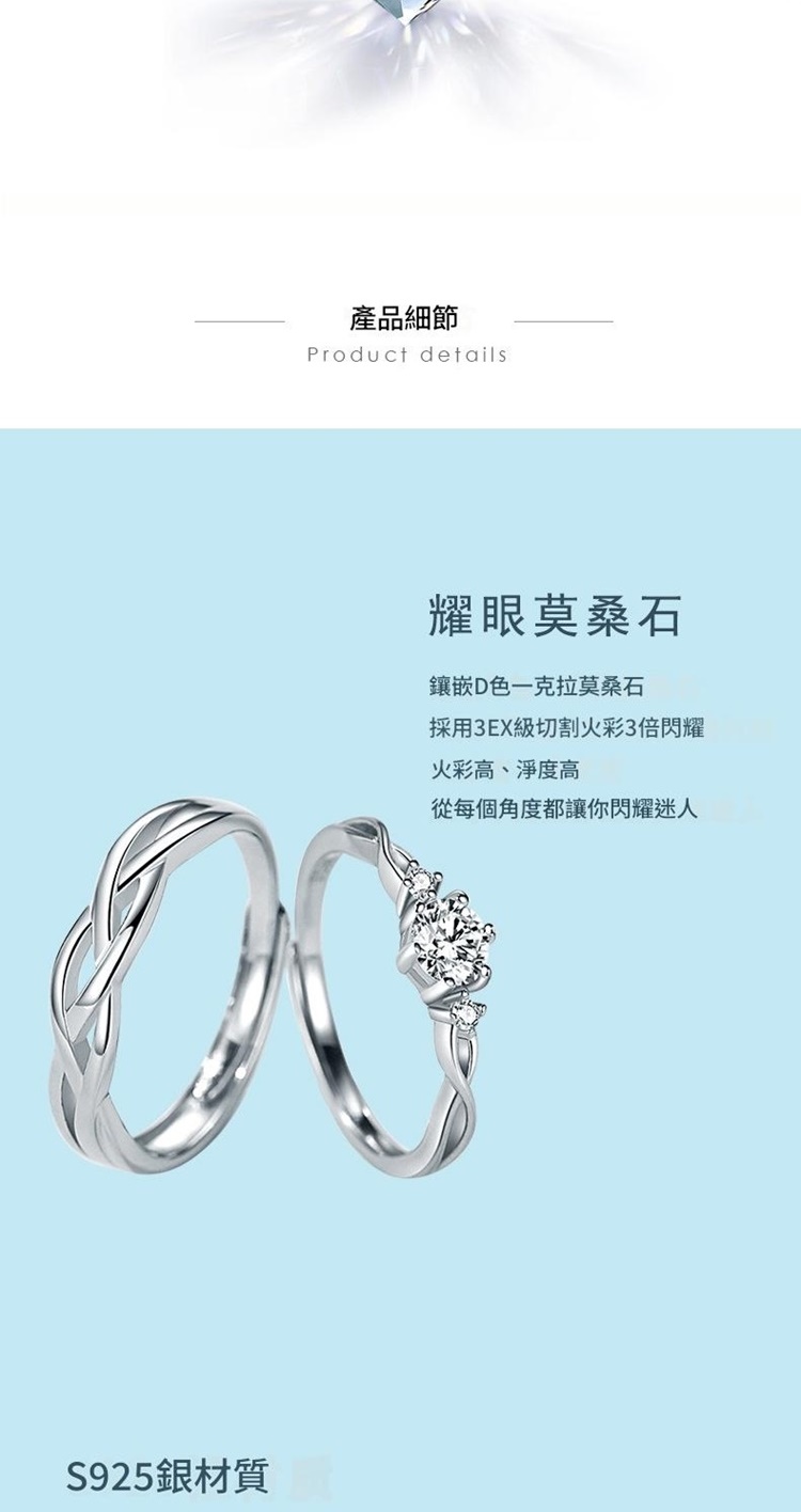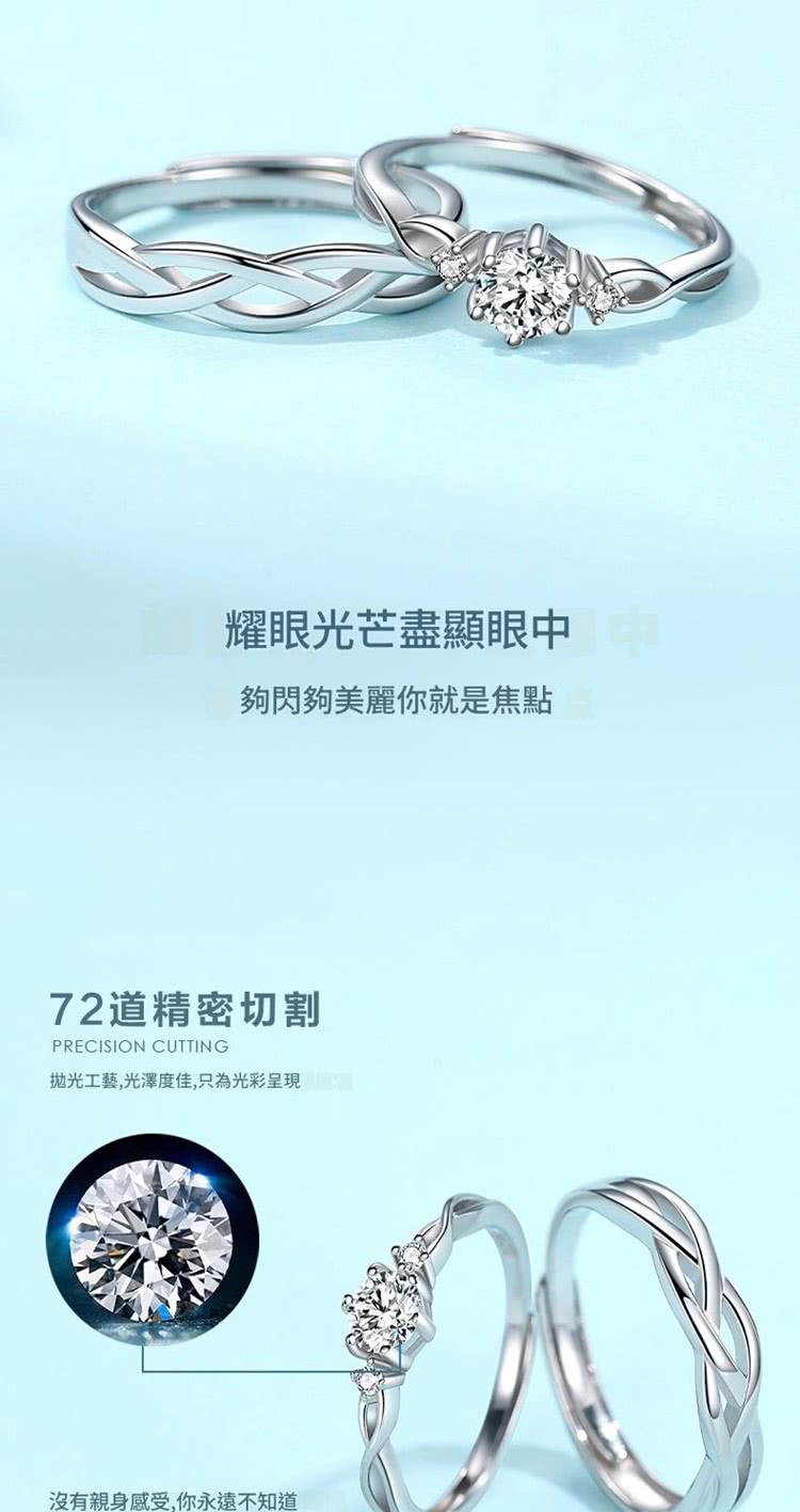 【巴黎精品】現貨+預購 頂級925純銀戒指婚戒女鑽戒開口戒情侶對戒尾戒情人節禮物(0.5克拉男女飾品a1li29)