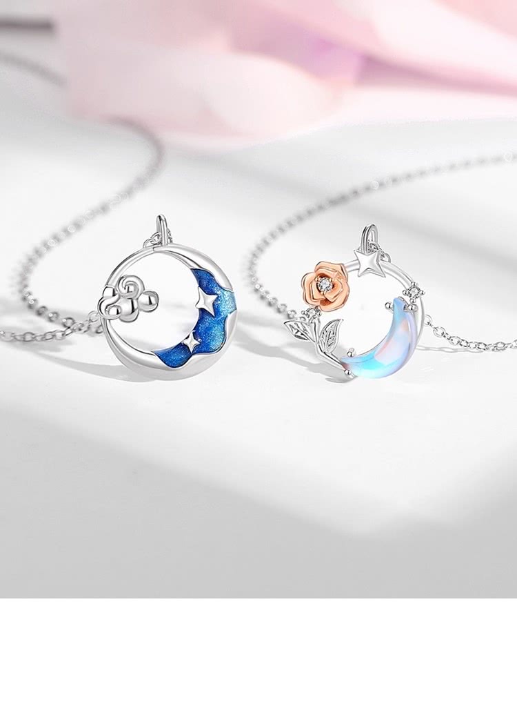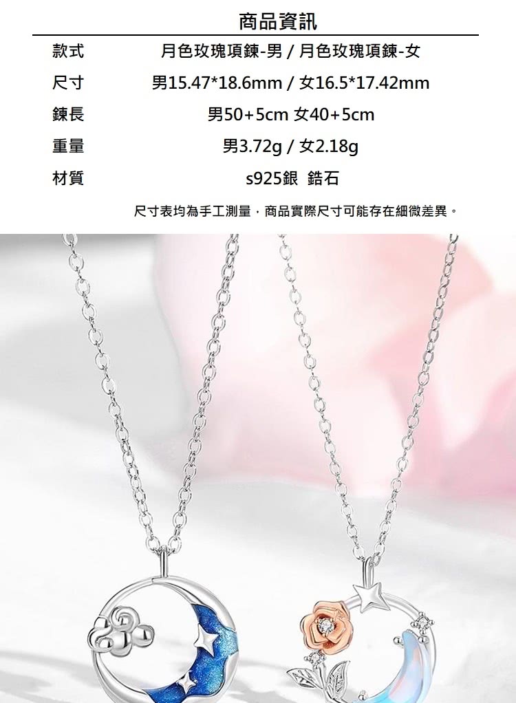 【巴黎精品】現貨+預購 頂級925純銀項鍊女項鍊項鏈鎖骨鍊情人節禮物情侶對鍊(月色玫瑰純銀男女飾品a1li20)