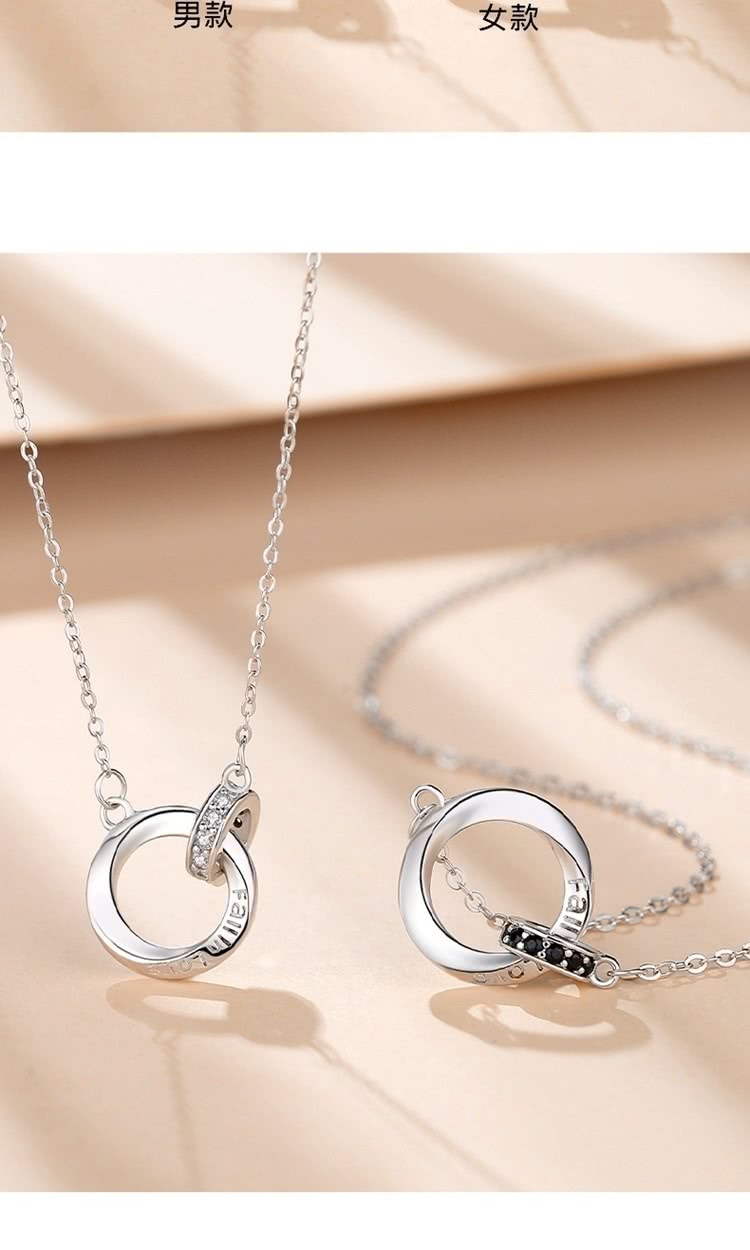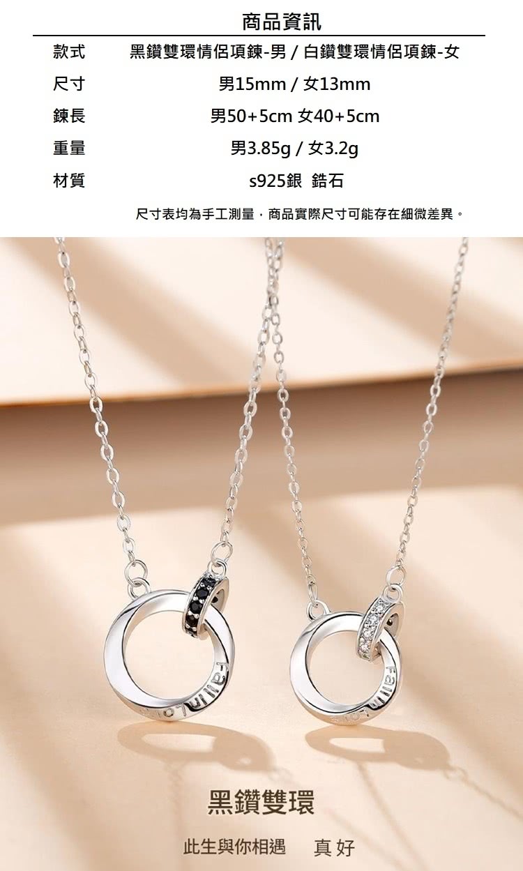 【巴黎精品】現貨+預購 頂級925純銀項鍊女項鍊項鏈鎖骨鍊情人節禮物情侶對鍊(經典雙環男女飾品a1li19)