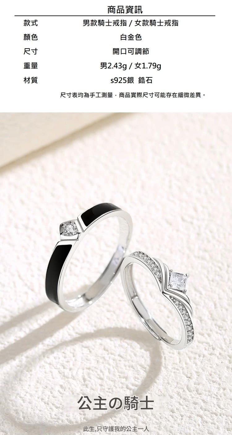 【巴黎精品】現貨+預購 頂級925純銀戒指婚戒女鑽戒開口戒情侶對戒尾戒情人節禮物(騎士公主男女飾品a1li18)