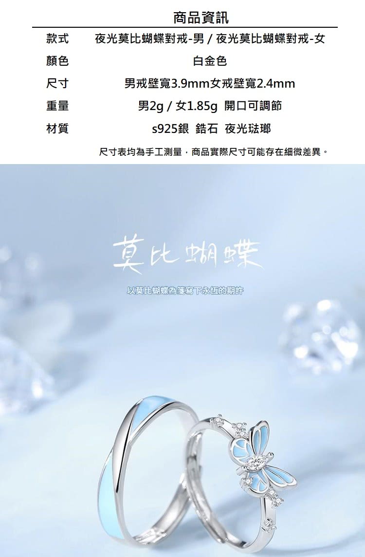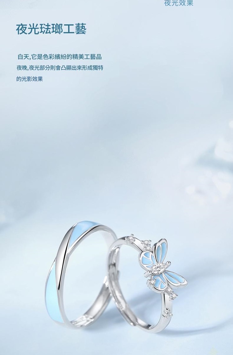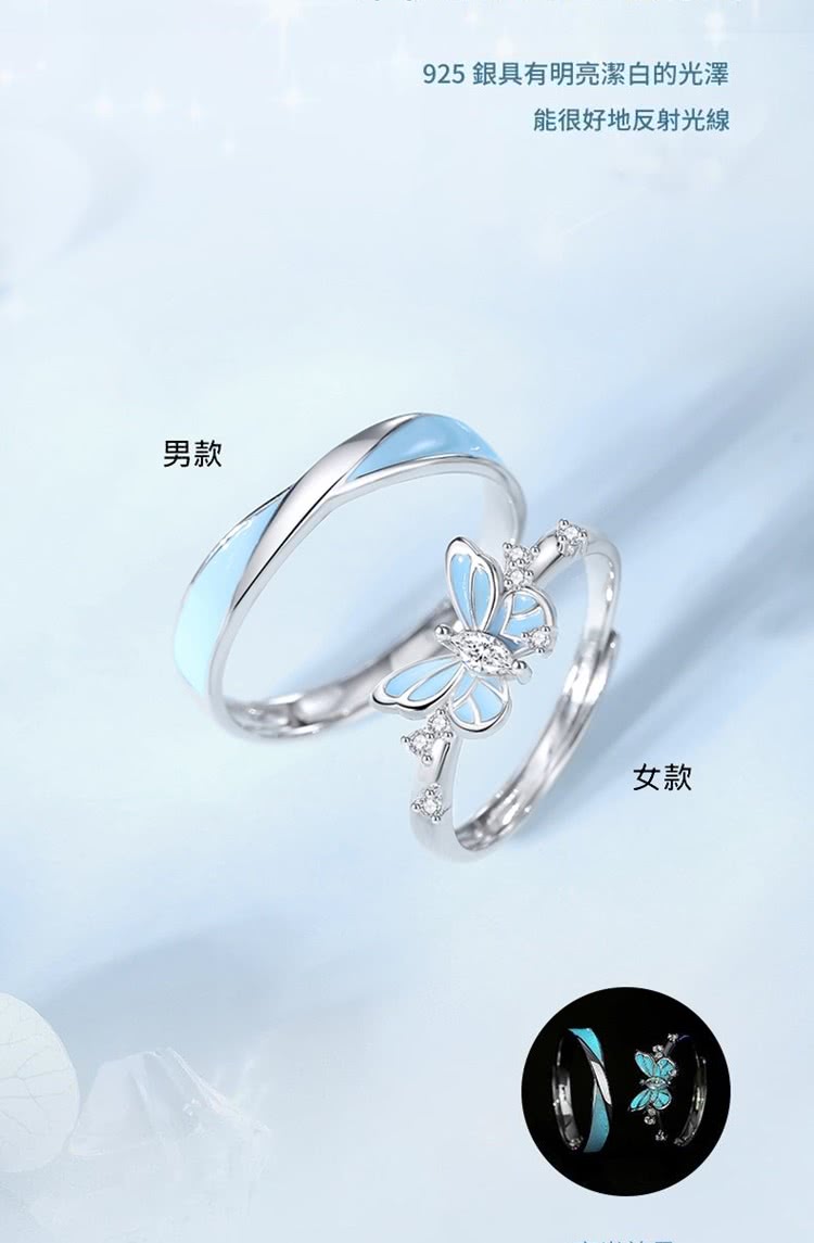【巴黎精品】現貨+預購 頂級925純銀戒指婚戒女鑽戒開口戒情侶對戒尾戒情人節禮物(夜光蝴蝶男女飾品a1li16)