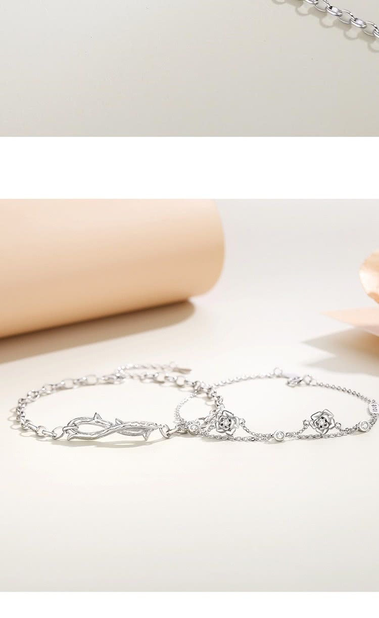 【巴黎精品】現貨+預購 頂級925純銀手鍊情侶手鏈女首飾情人節禮物(荊棘玫瑰情侶男女飾品a1li9)