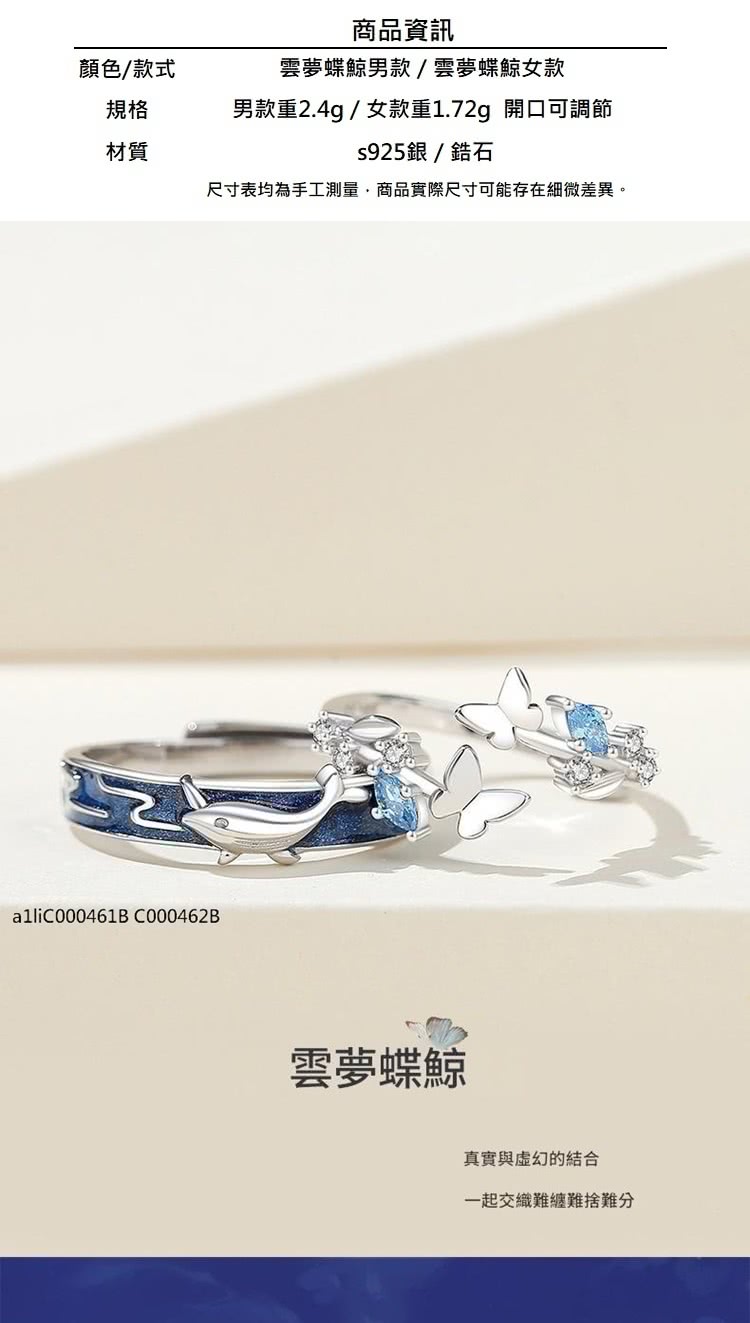 【巴黎精品】現貨+預購 頂級925純銀戒指婚戒女鑽戒開口戒子情侶對戒尾戒情人節禮物(蝴蝶鯨魚男女飾品a1li1)