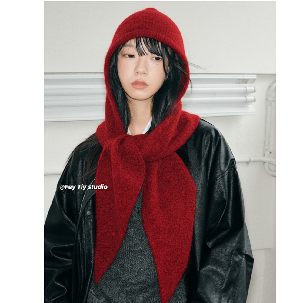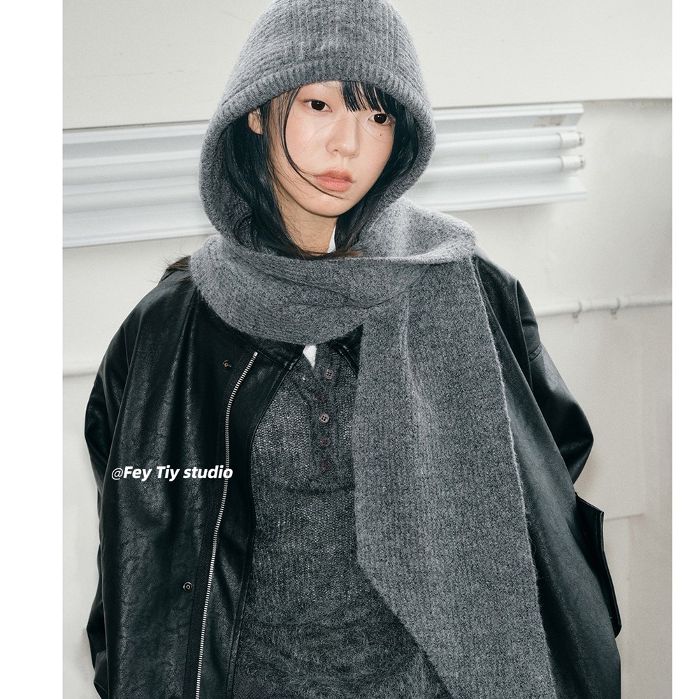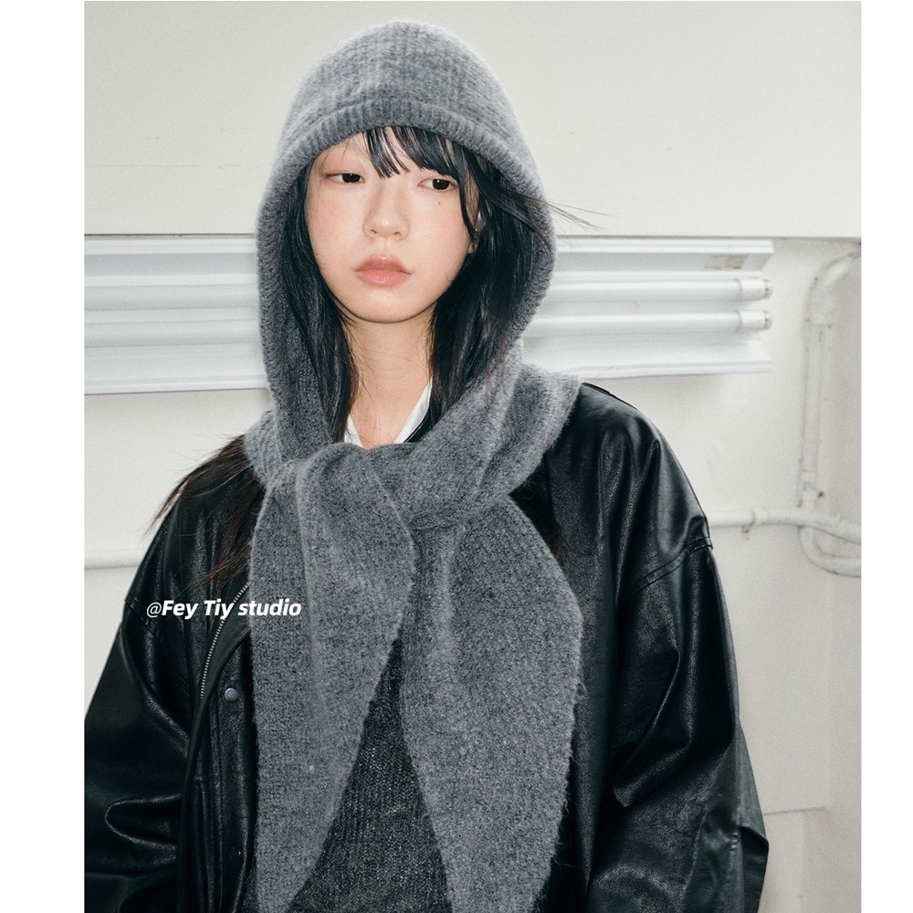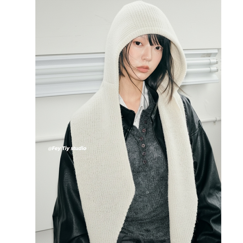 針織連帽圍巾二合一