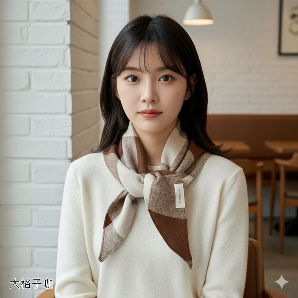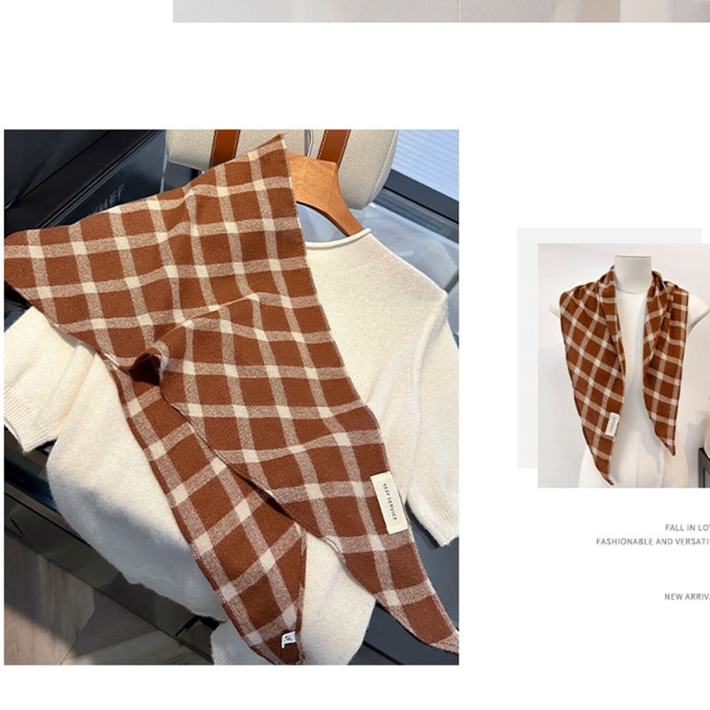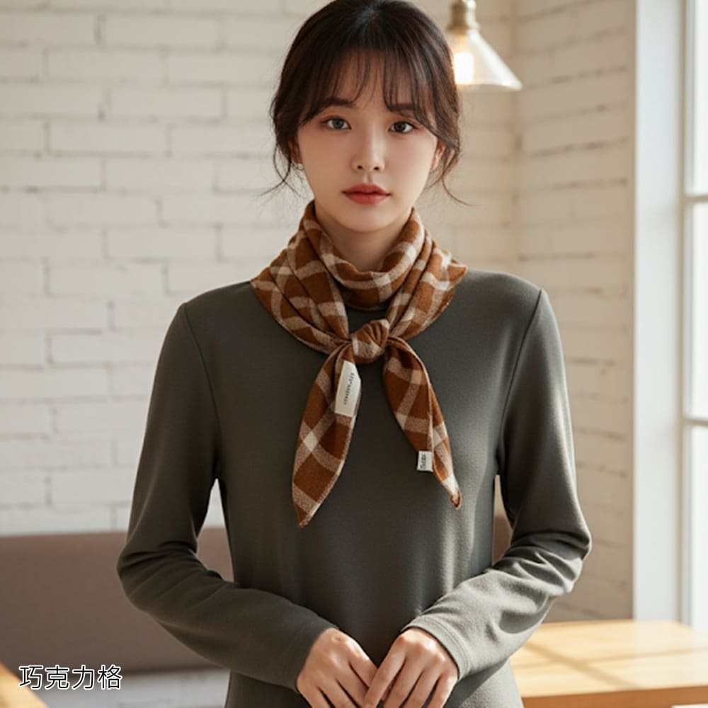 【HaNA 梨花】韓國空運 咖啡廳街拍小文青三角格紋圍巾(圍巾 小文青 休閒百搭)