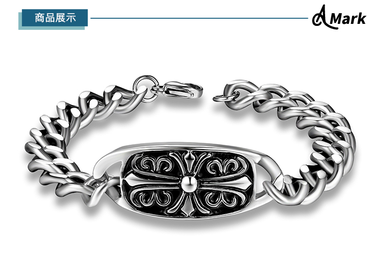 【A MARK】復古克羅心十字架造型316L鈦鋼手鍊(316L鈦鋼手鍊 十字架手鍊)