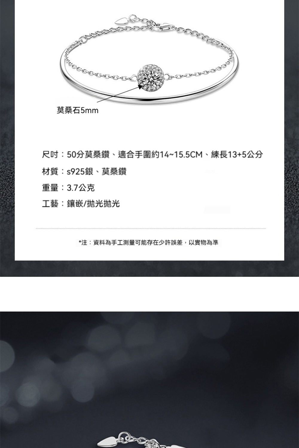 ✨ 商品尺吋:50分莫桑鑽、適合手圍約14~15.5CM、練長13+5公分
