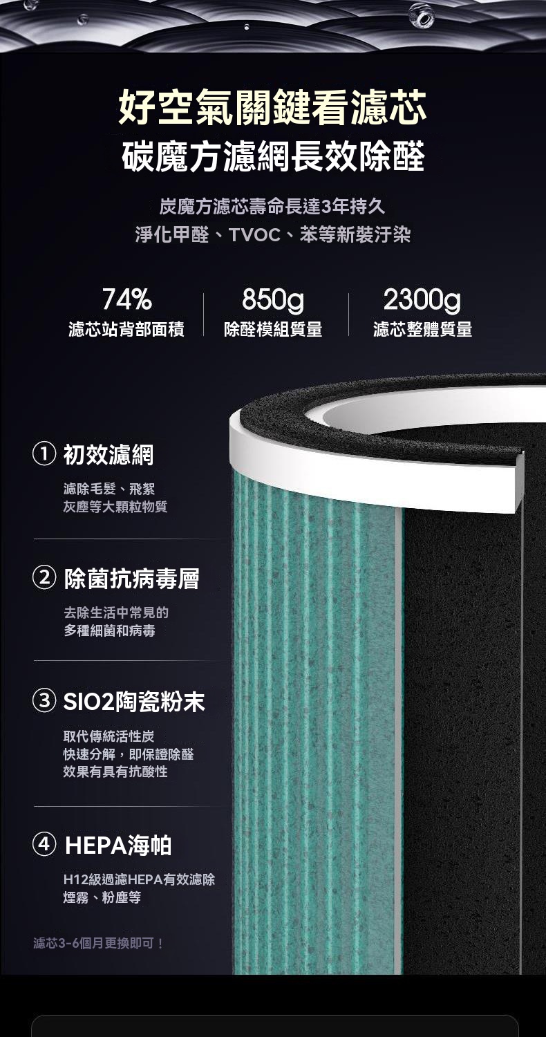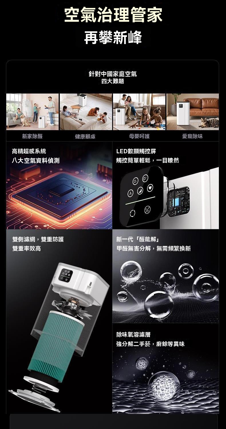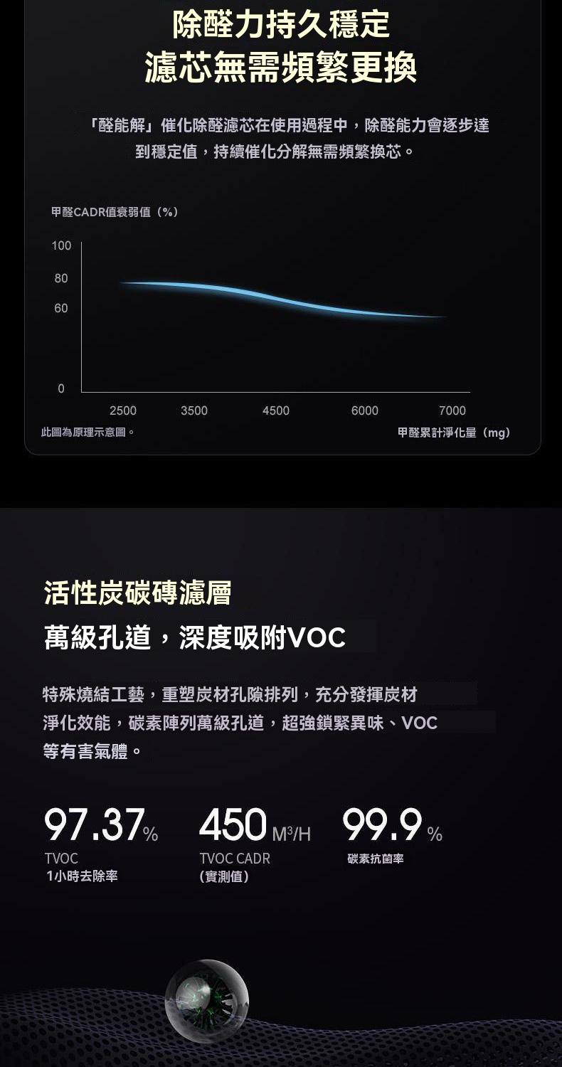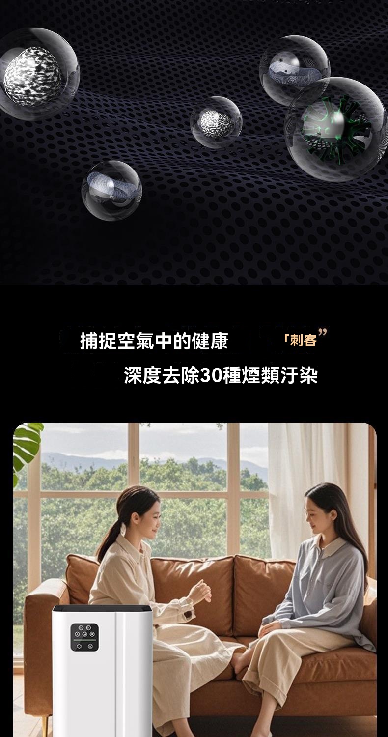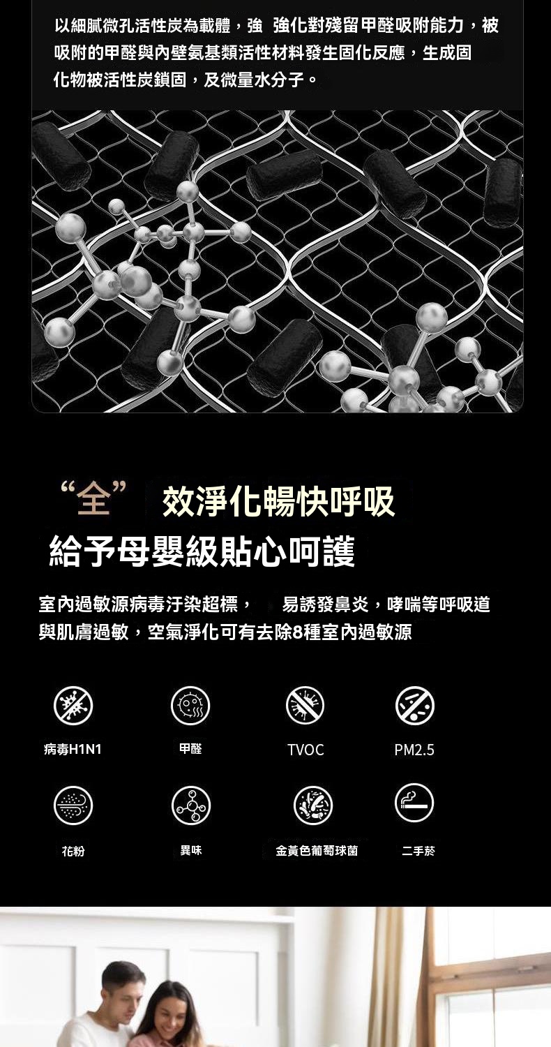 凈化汙染物 :甲醛/二手煙/花粉/VOC