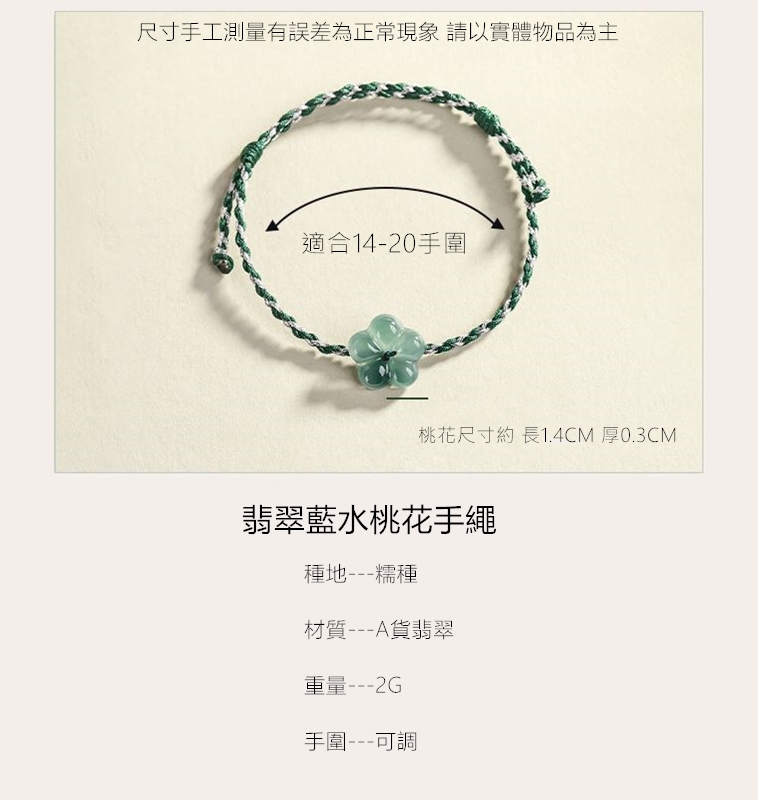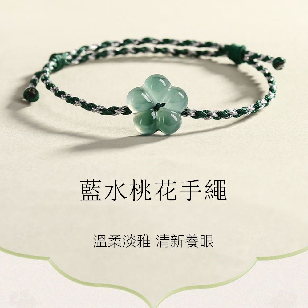 【Penny珮妮】A貨翡翠藍水 桃花編織 手繩手鍊(母親節 生日禮物 交換禮物 尾牙 新年 結婚 情人節)