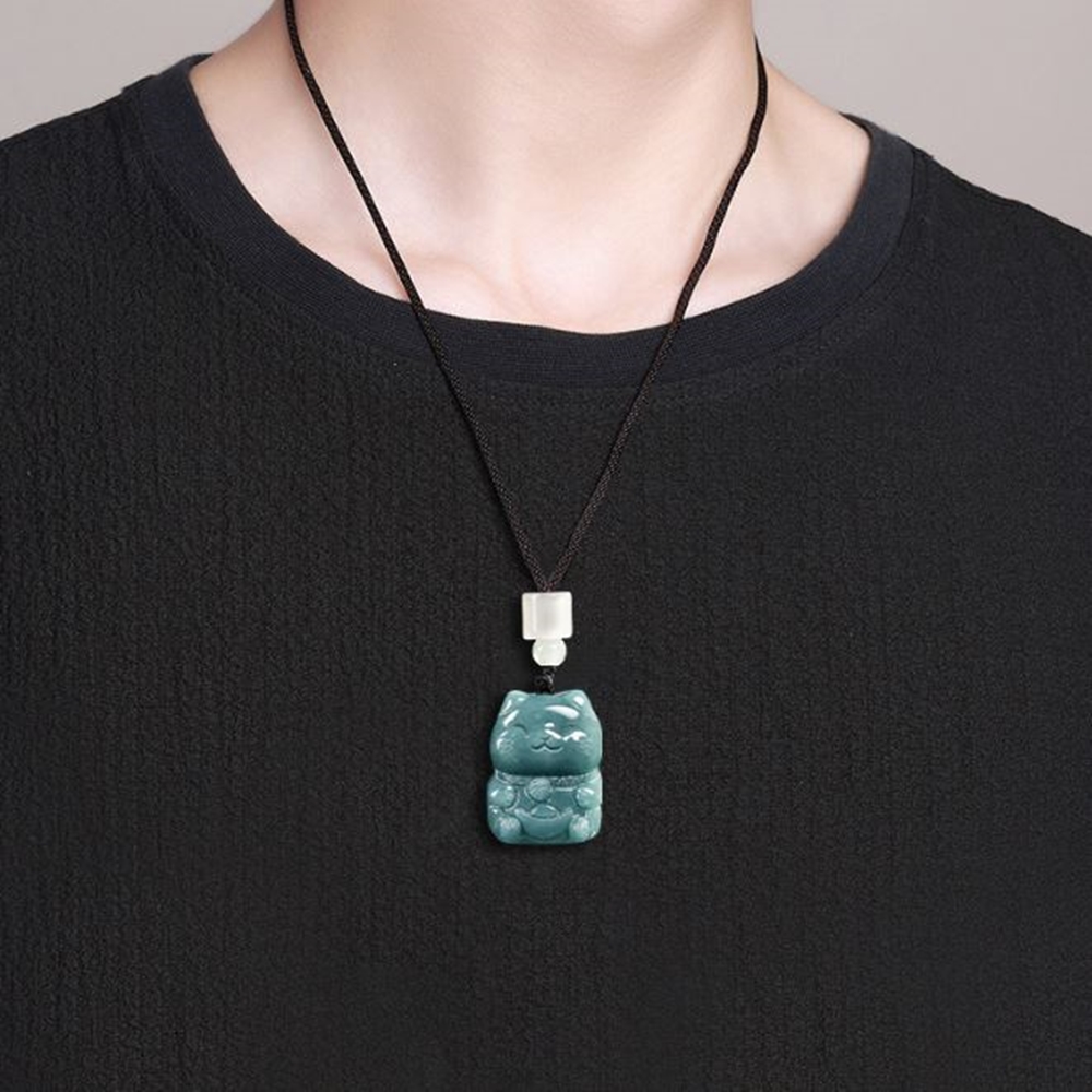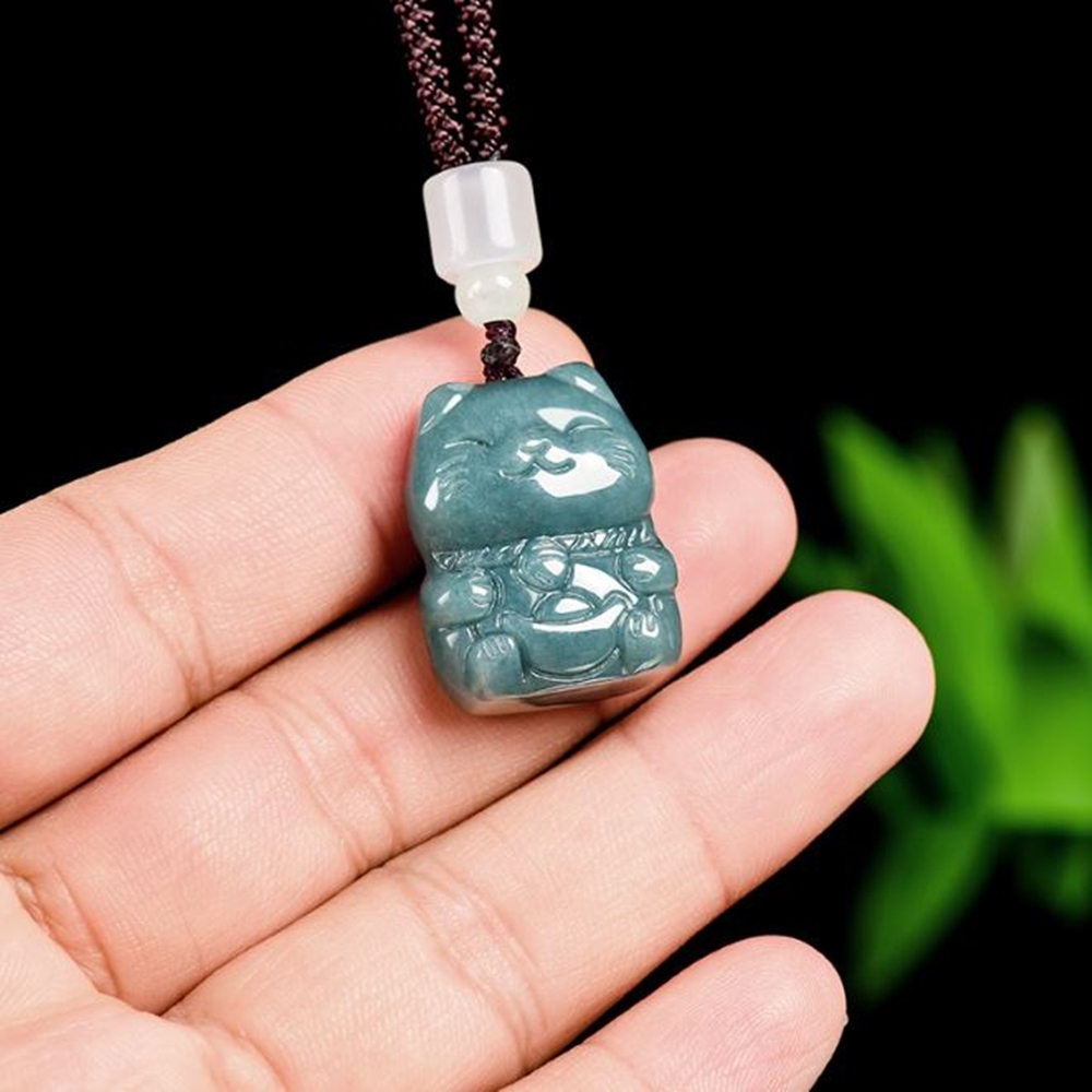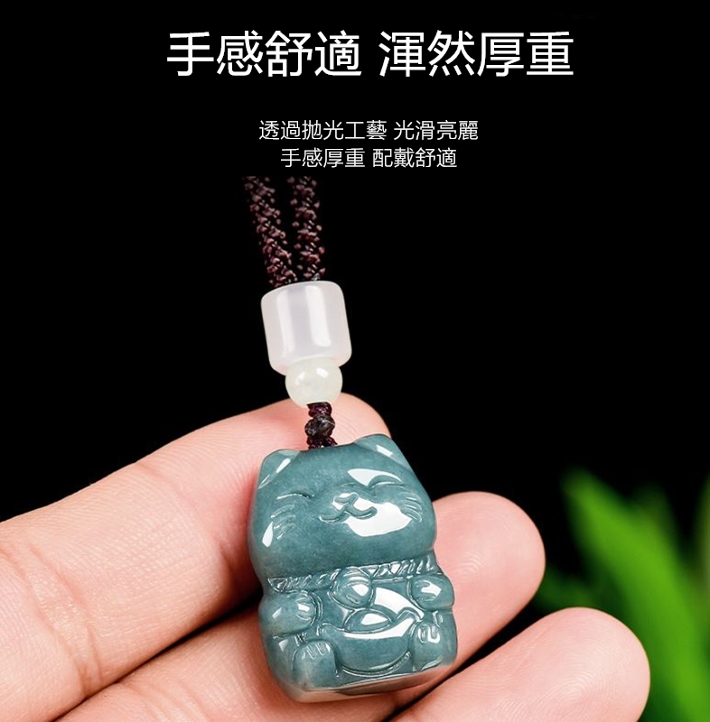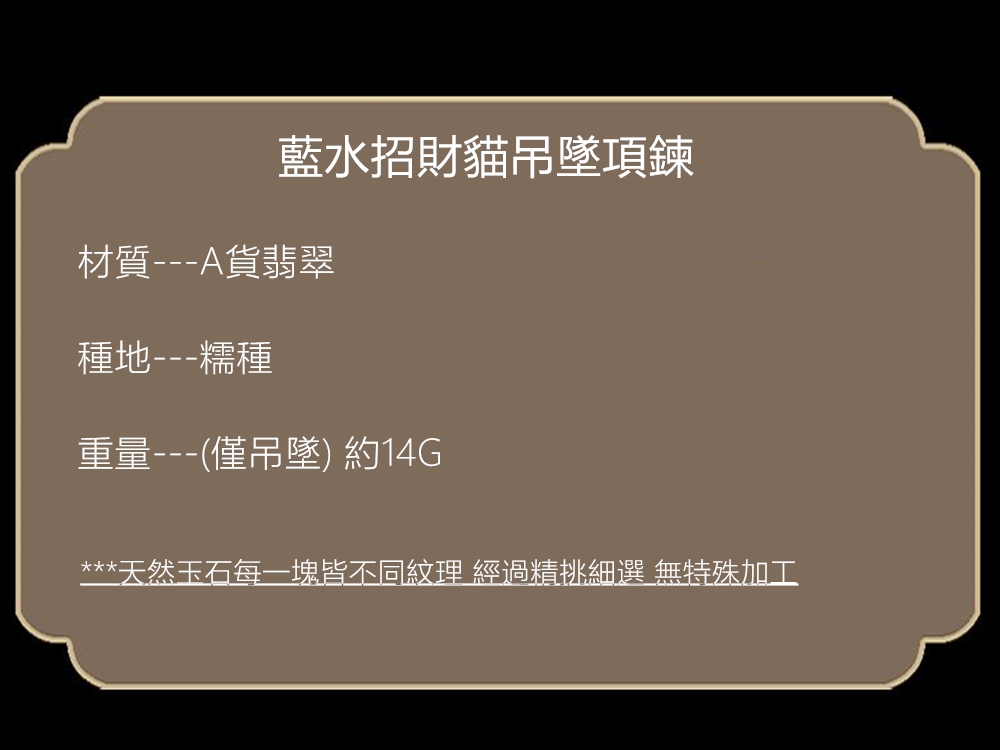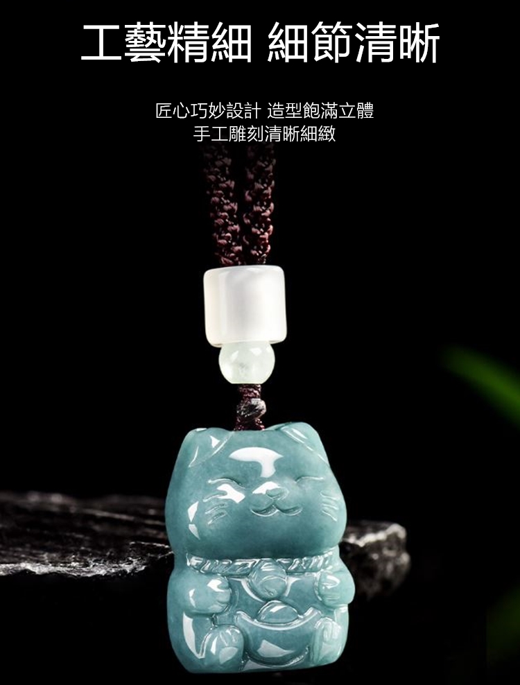 【Penny珮妮】A貨翡翠藍水 招財貓 項鍊吊墜(母親節 生日禮物 交換禮物 尾牙 新年 結婚 情人節)
