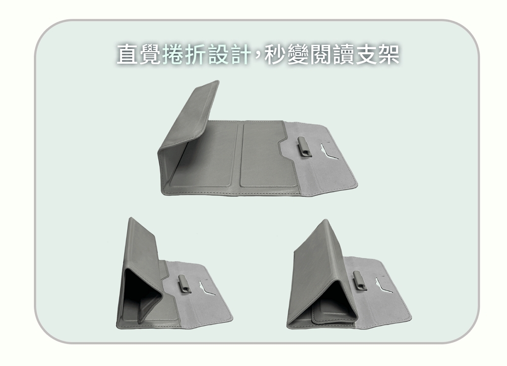 1. 新品皮革較硬,初次使用請多按壓磁吸折片,幫助皮革軟化並增加吸附力。