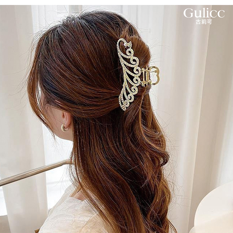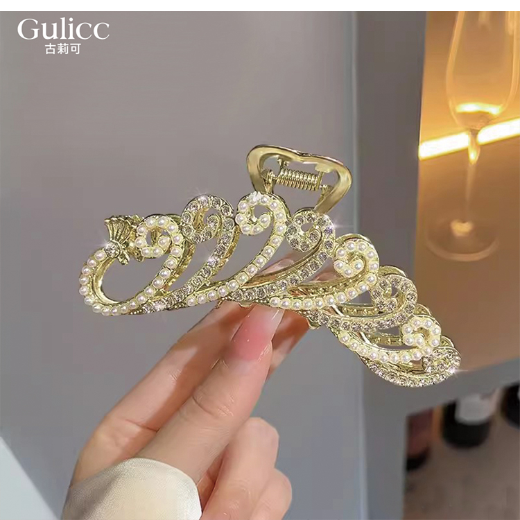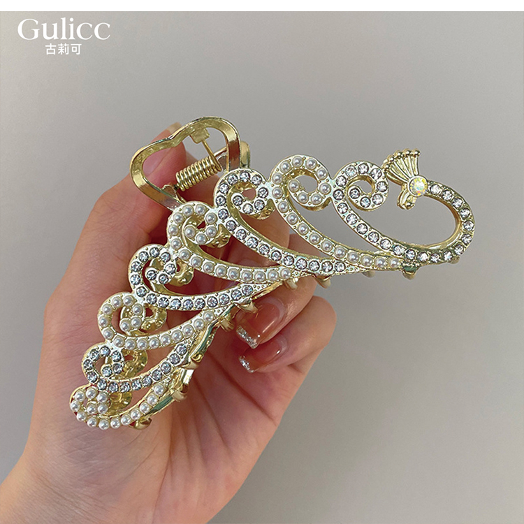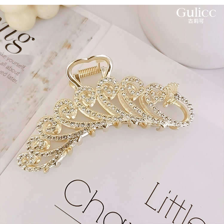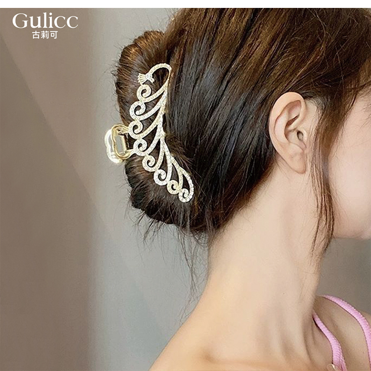 【Gulicc】金色孔雀 珍珠鑲鑽 大抓夾(雙十 萬聖節 生日 髮飾 頭飾 鯊魚夾 抓夾 禮物)