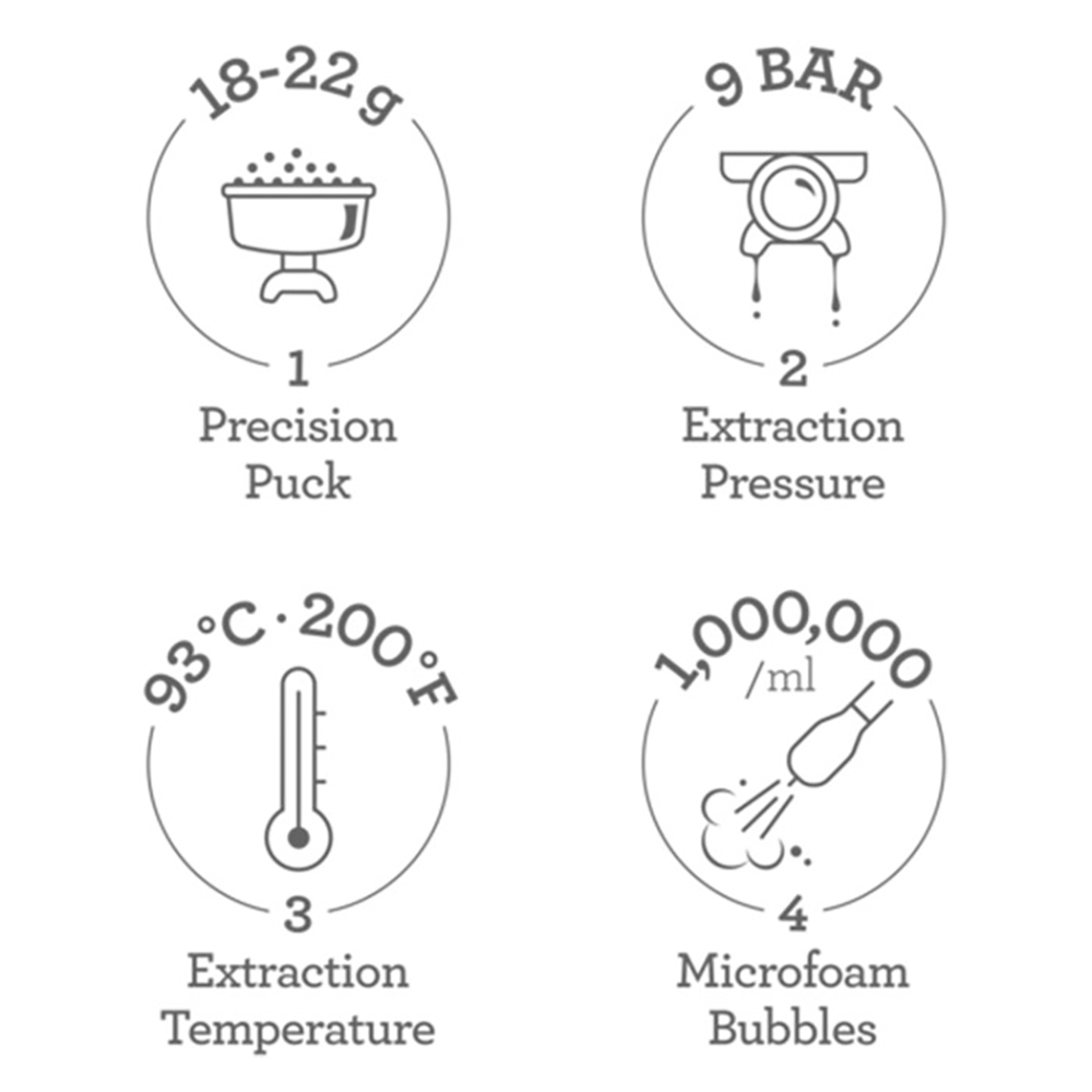 - 低壓預浸泡技術 / 逐步增壓 咖啡萃取平衡