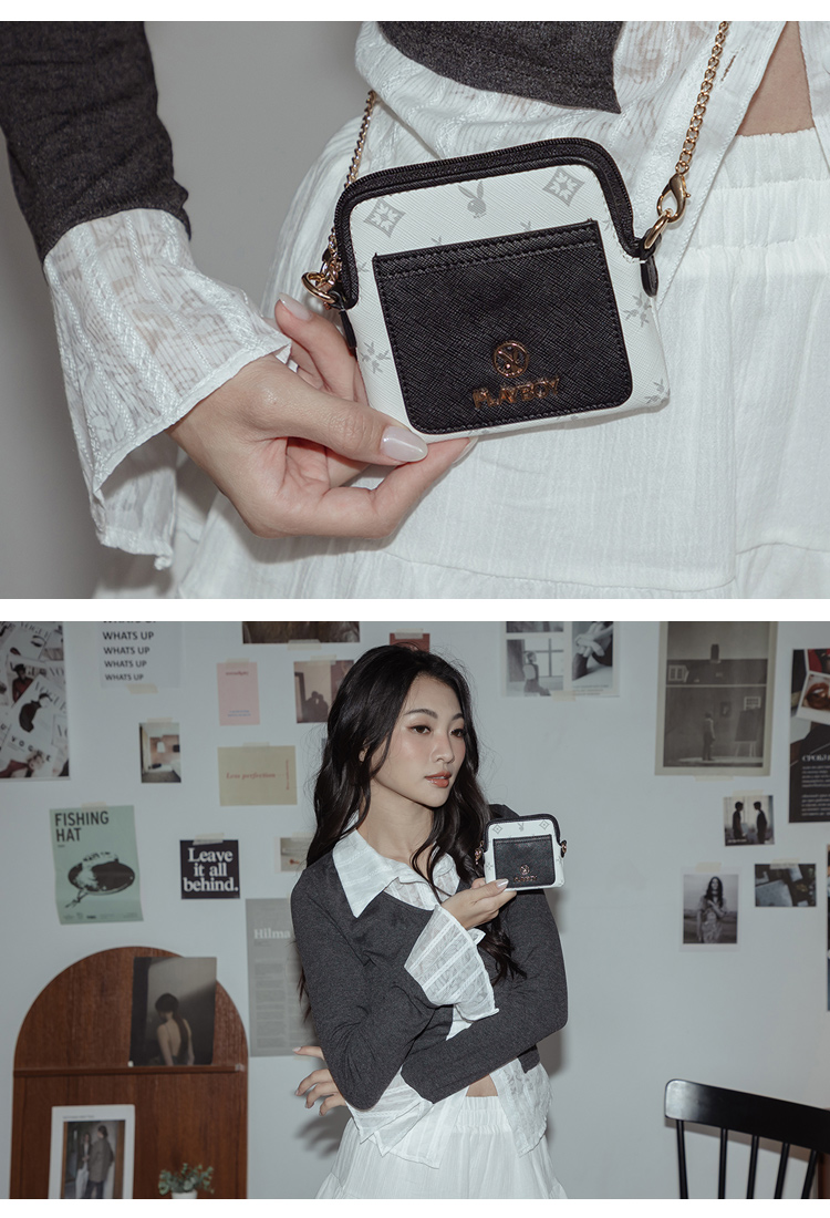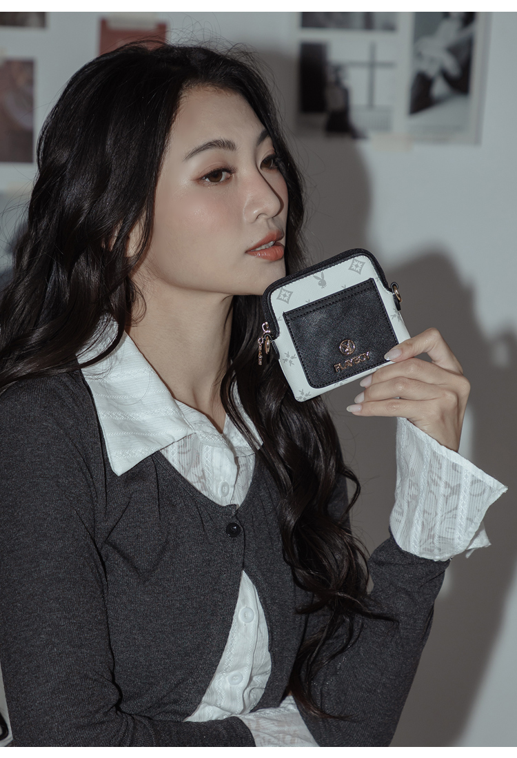 PLAYBOY - 零錢包 黑白TWO系列 - 米白色