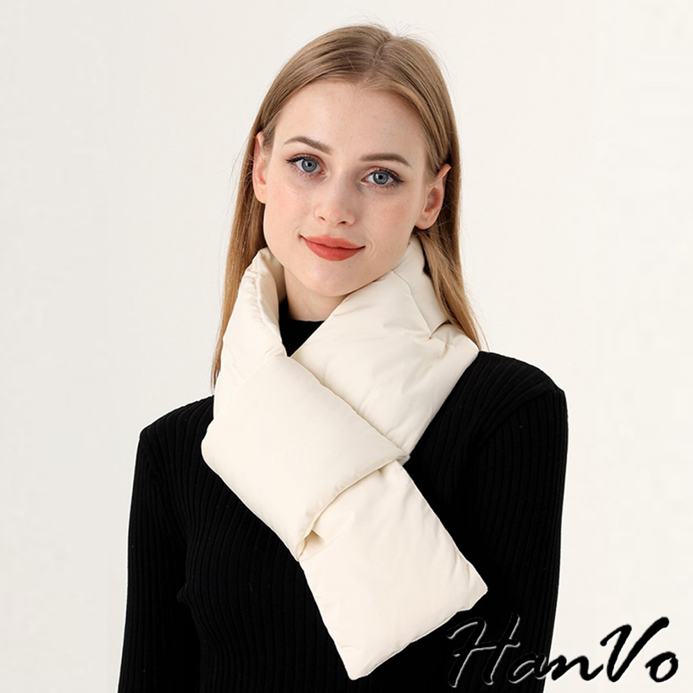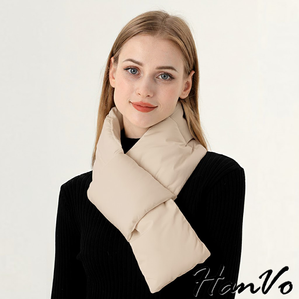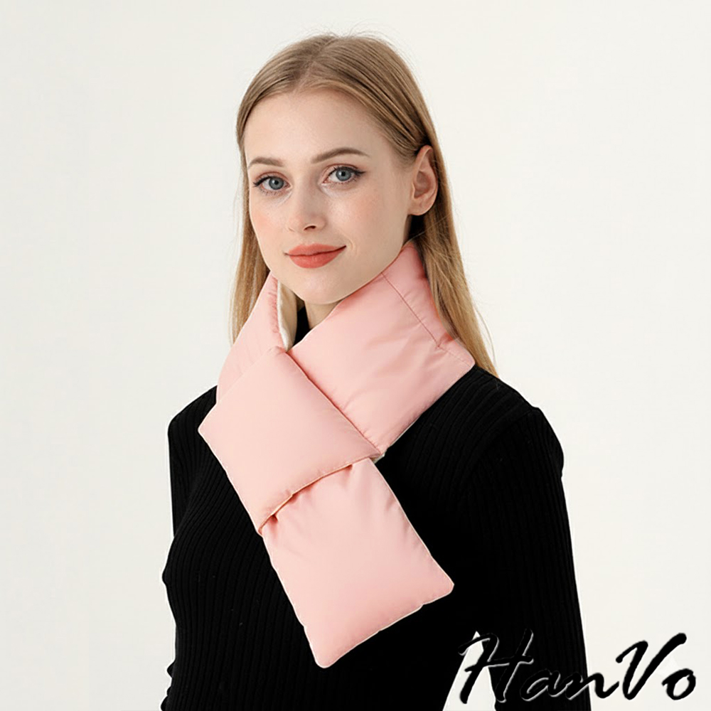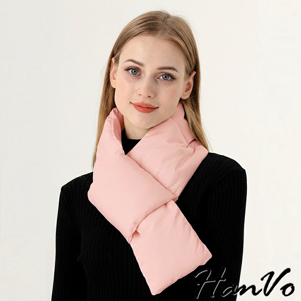 【HanVo】現貨 環繞式保暖防風羽絨圍巾 蓄熱鎖溫 抗寒保暖(輕盈輕巧 圍脖 女生配件 C04-8209)