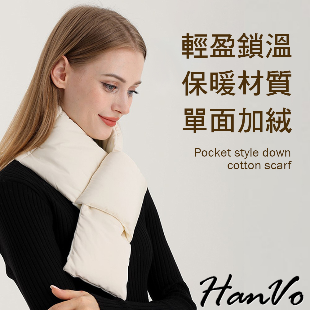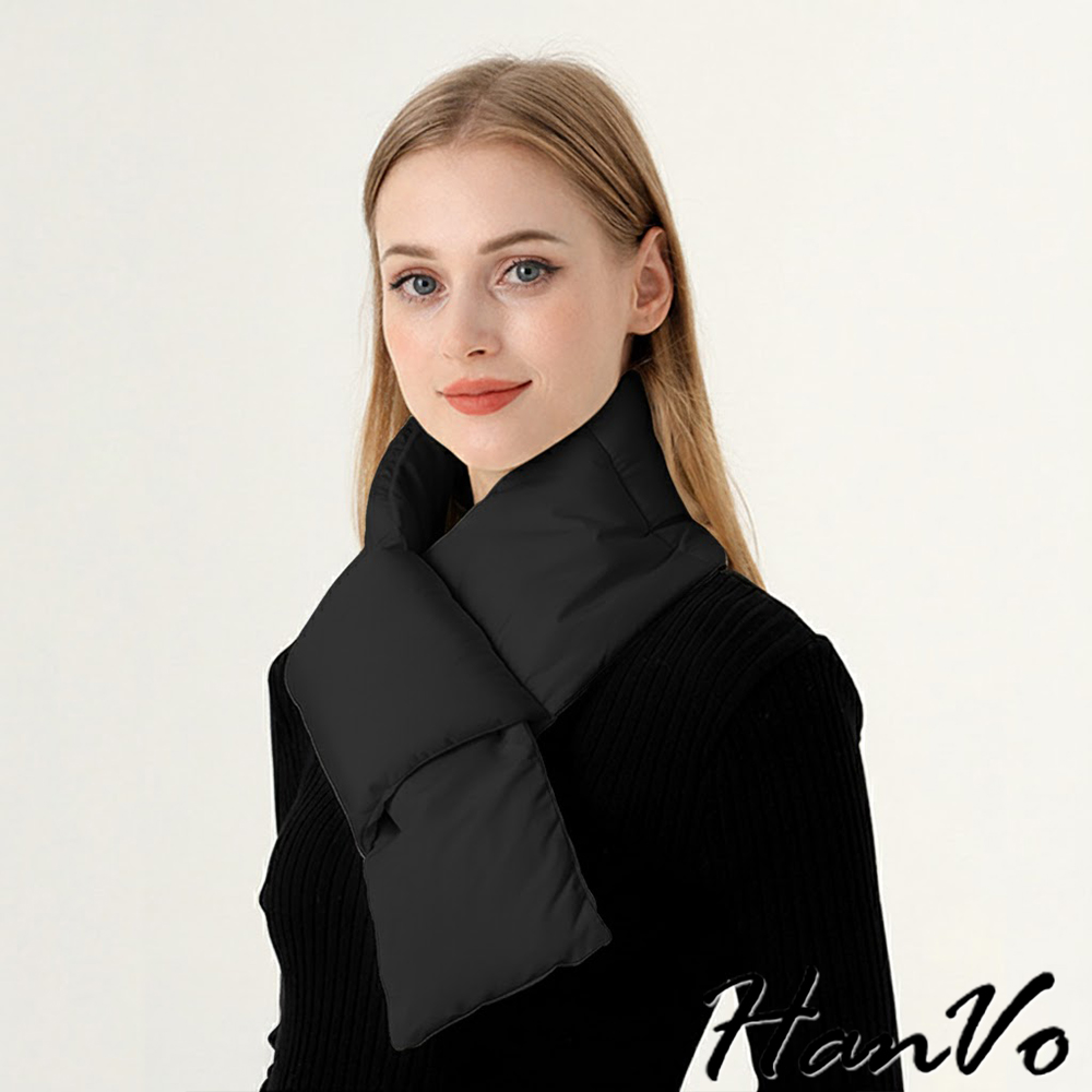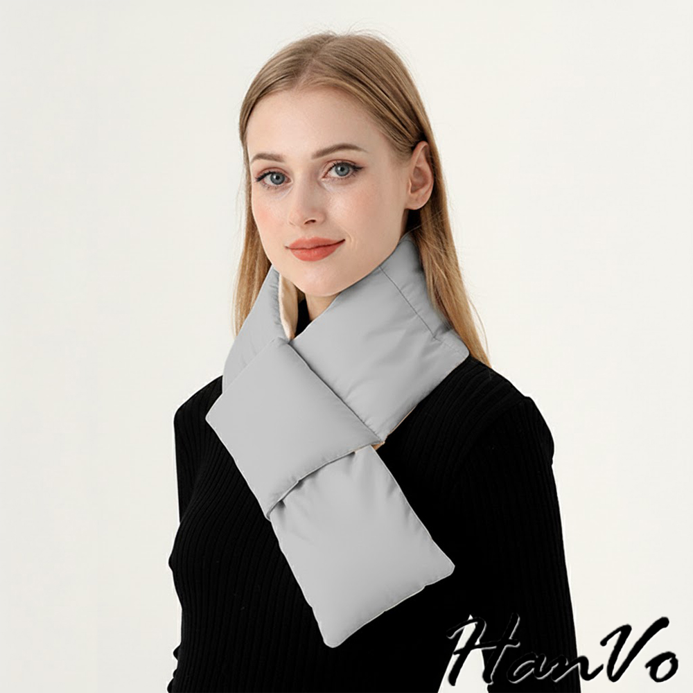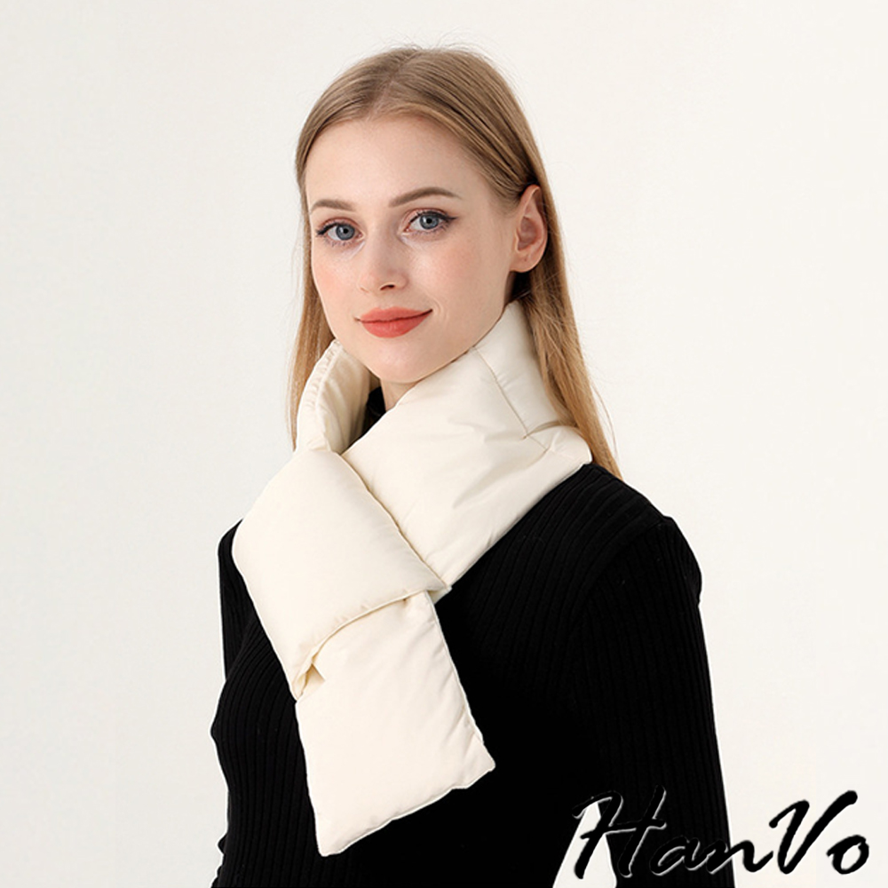 【HanVo】現貨 環繞式保暖防風羽絨圍巾 蓄熱鎖溫 抗寒保暖(輕盈輕巧 圍脖 女生配件 C04-8209)