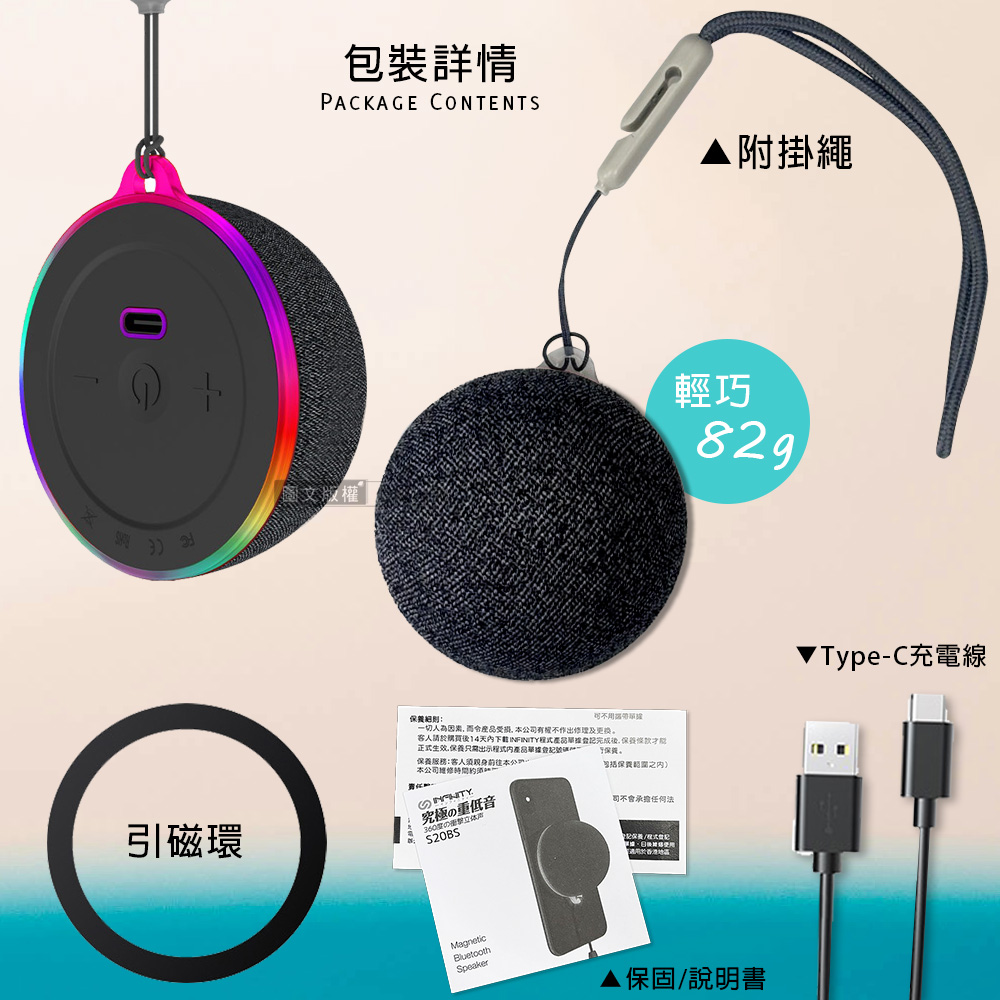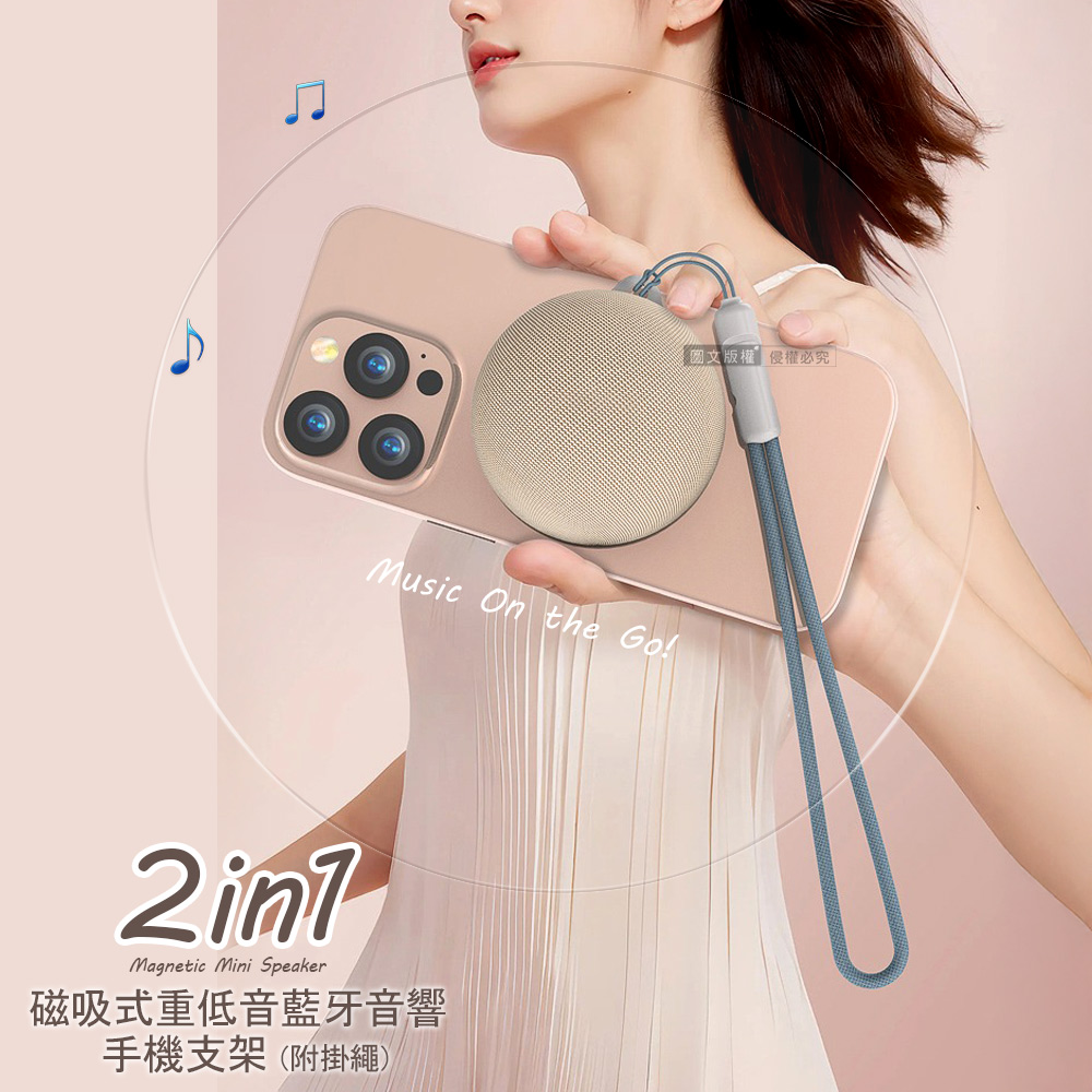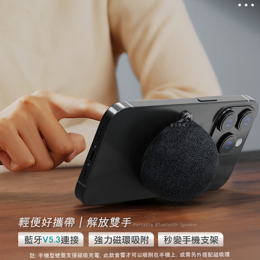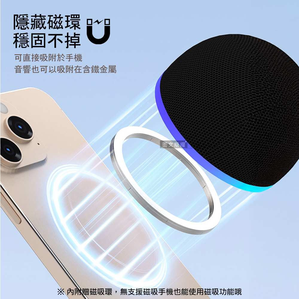 【INFINITY】迷你磁吸式 重低音無線藍牙音響 手機支架藍牙喇叭(360度環繞立體聲)