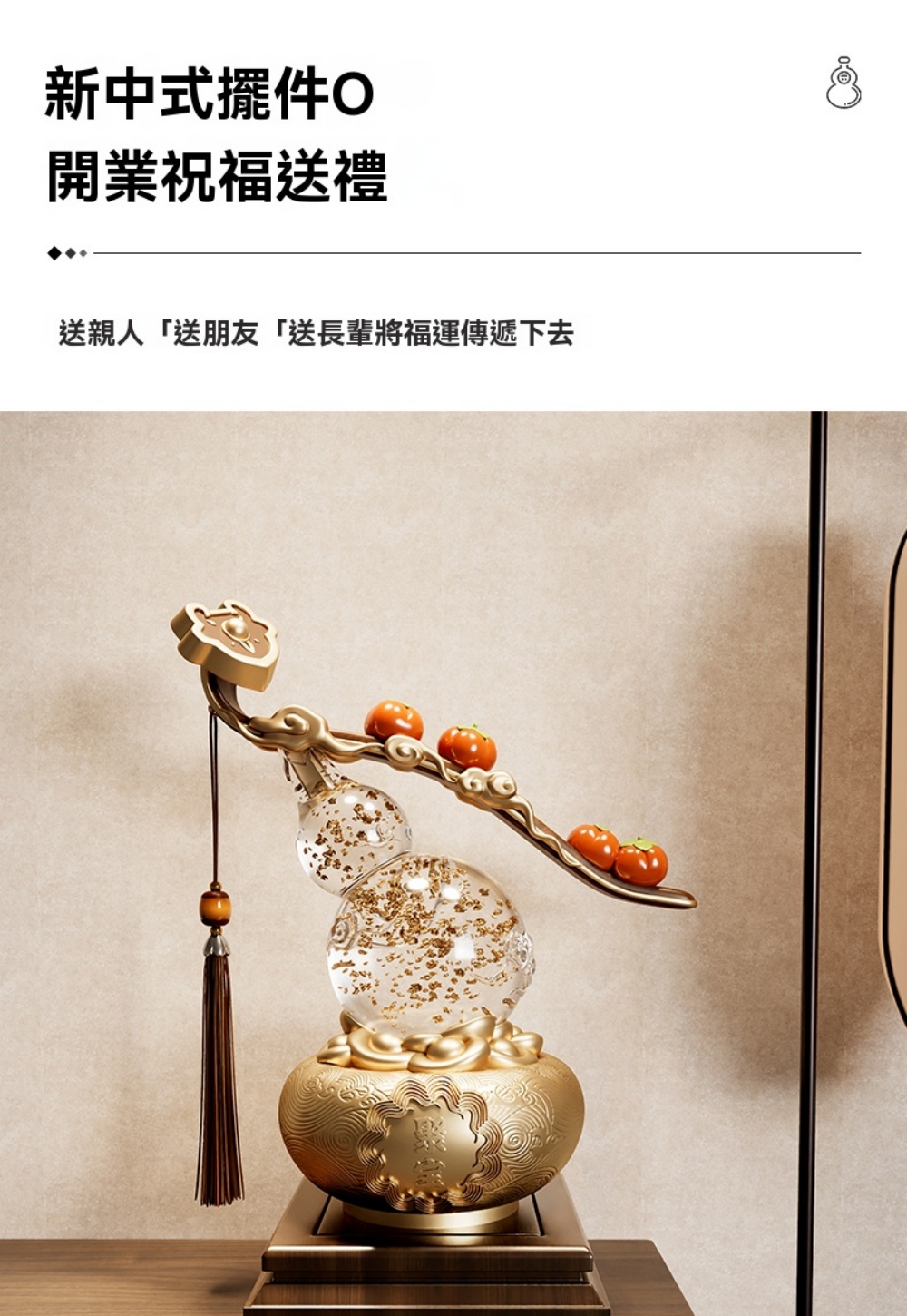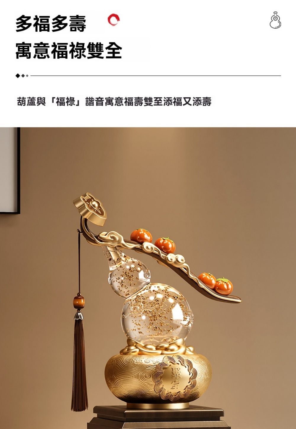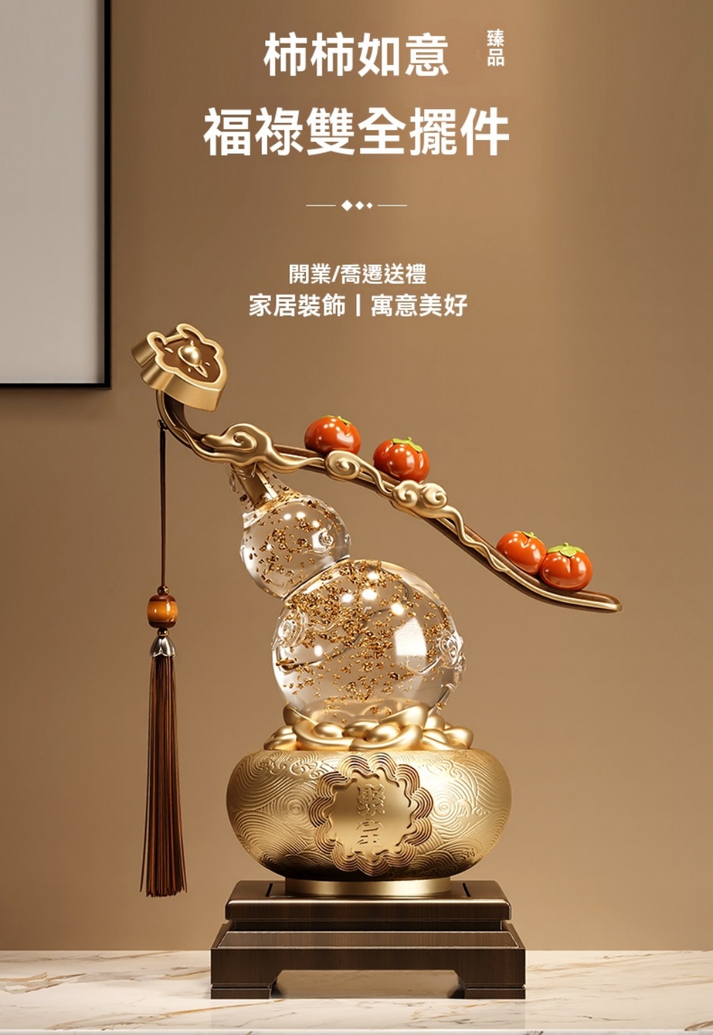 【巨匠】柿柿如意葫蘆擺件 新中式擺飾 客廳酒櫃玄關裝飾品 喬遷新居開業禮物(20*13*28CM聚寶盆葫蘆擺件)