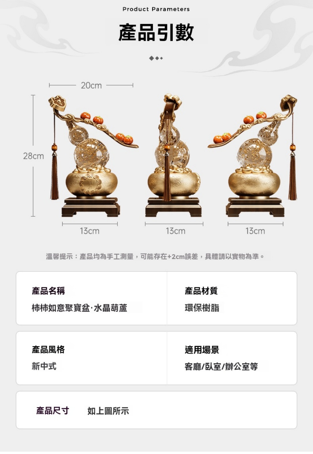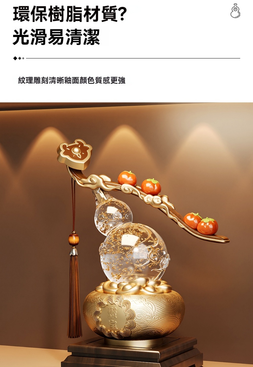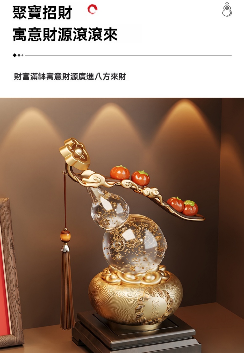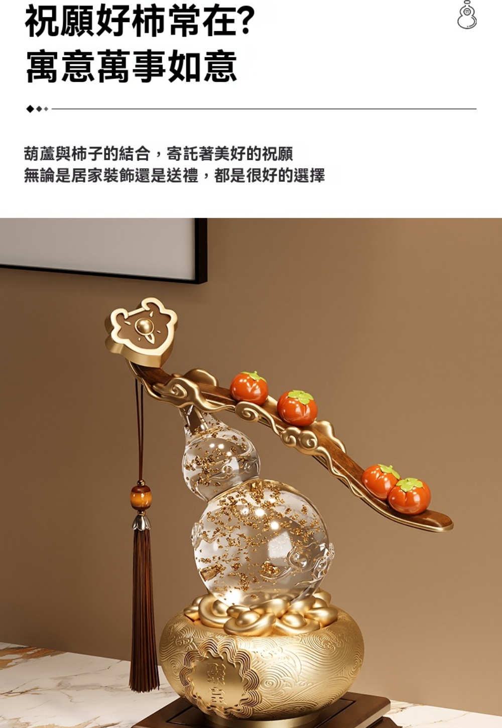 【巨匠】柿柿如意葫蘆擺件 新中式擺飾 客廳酒櫃玄關裝飾品 喬遷新居開業禮物(20*13*28CM聚寶盆葫蘆擺件)