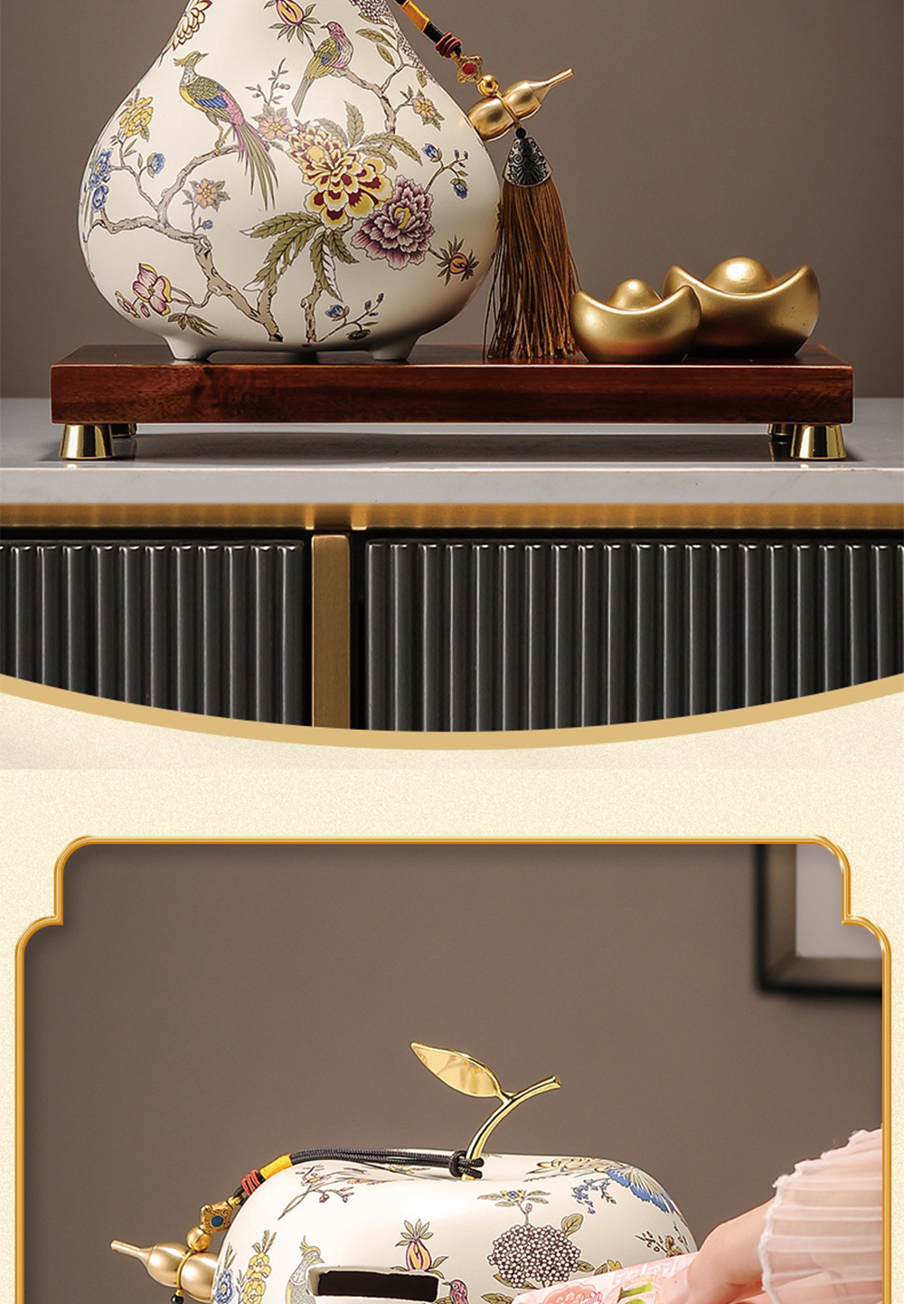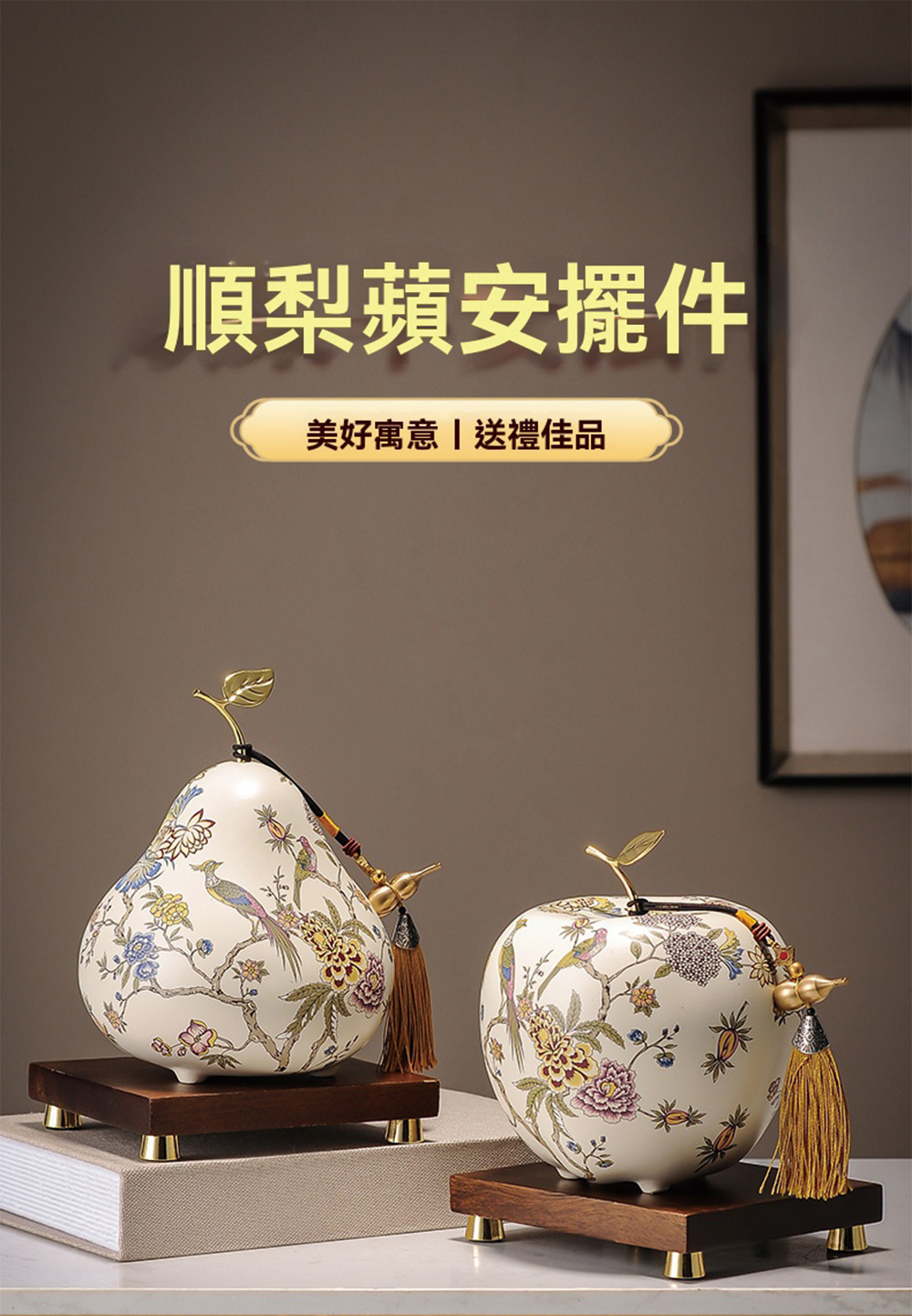 【超微米】入戶玄關平安順利蘋果擺件 新中式客廳電視酒櫃裝飾品 喬遷新居禮物(玄關擺件禮盒裝16*16*24)