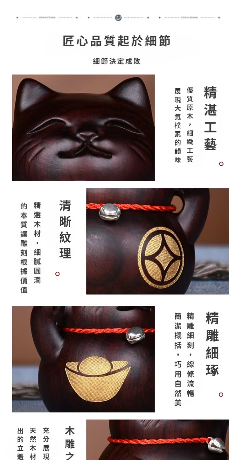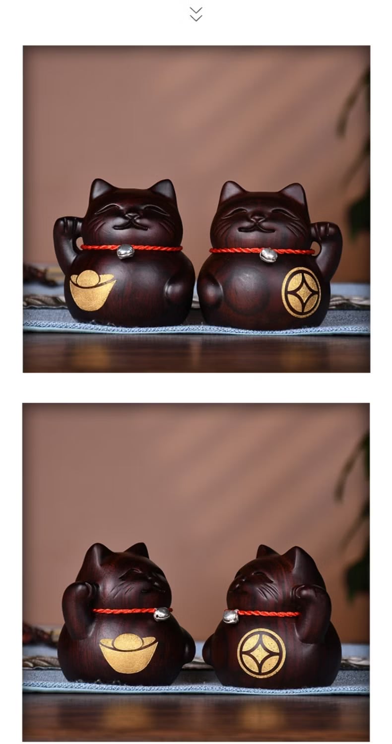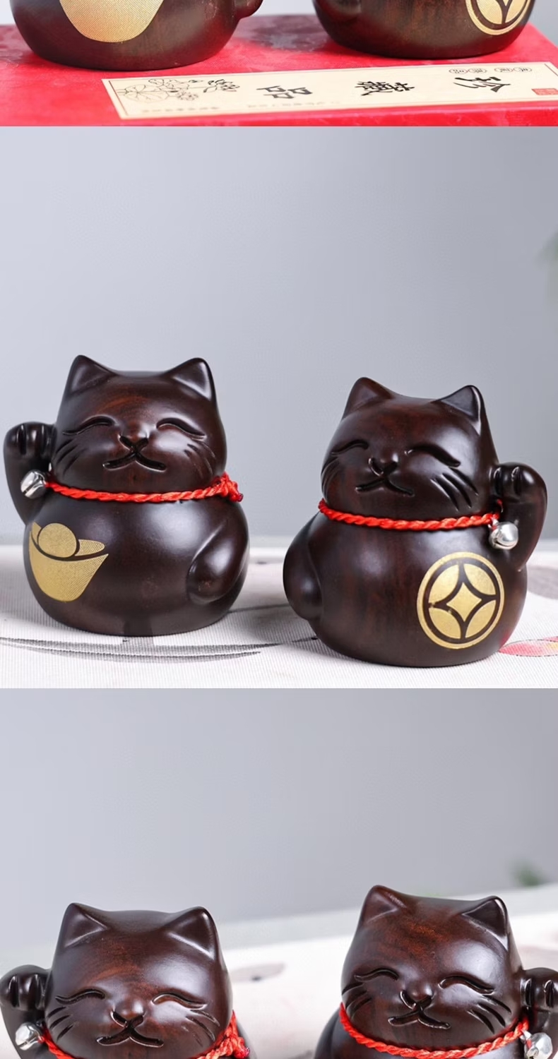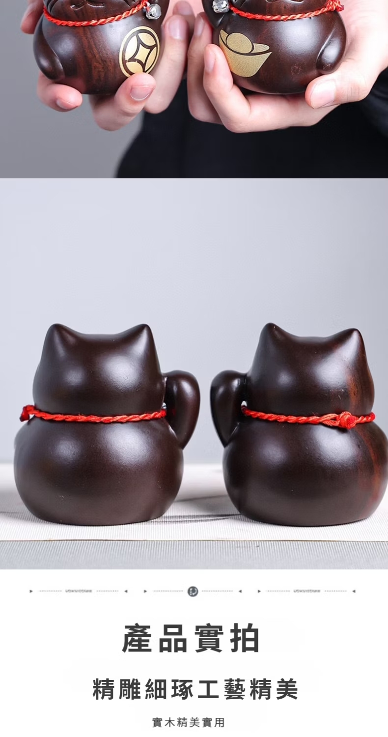 【送禮首選】招財貓實木雕刻工藝品套組(黑檀木 擺件 禮品 居家 精美 櫃台 收銀 長輩 作客 房間 客廳)