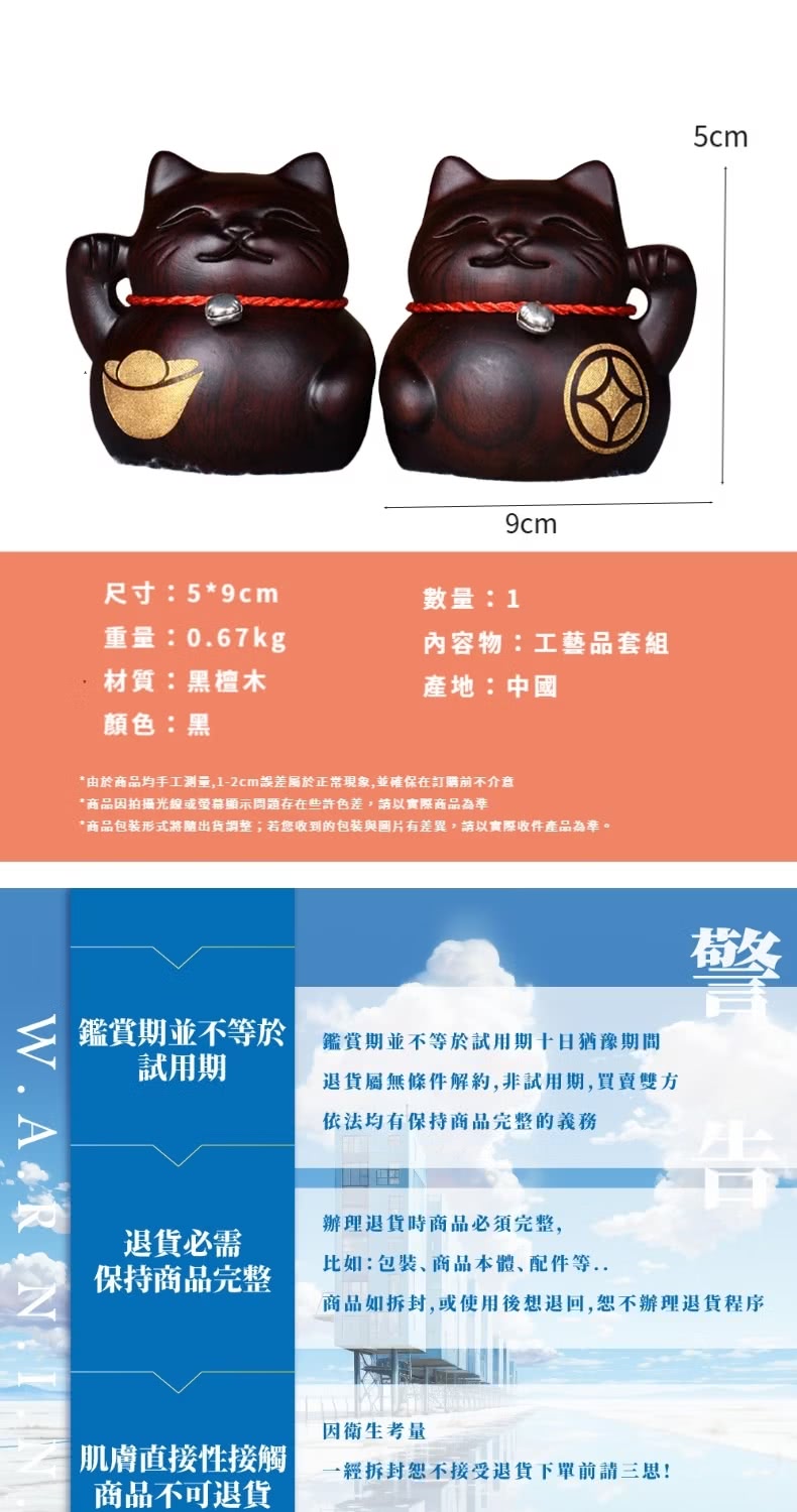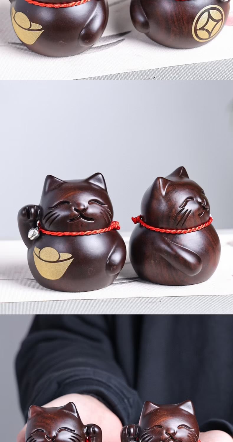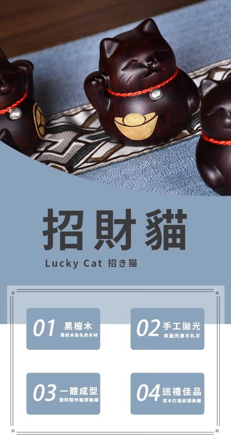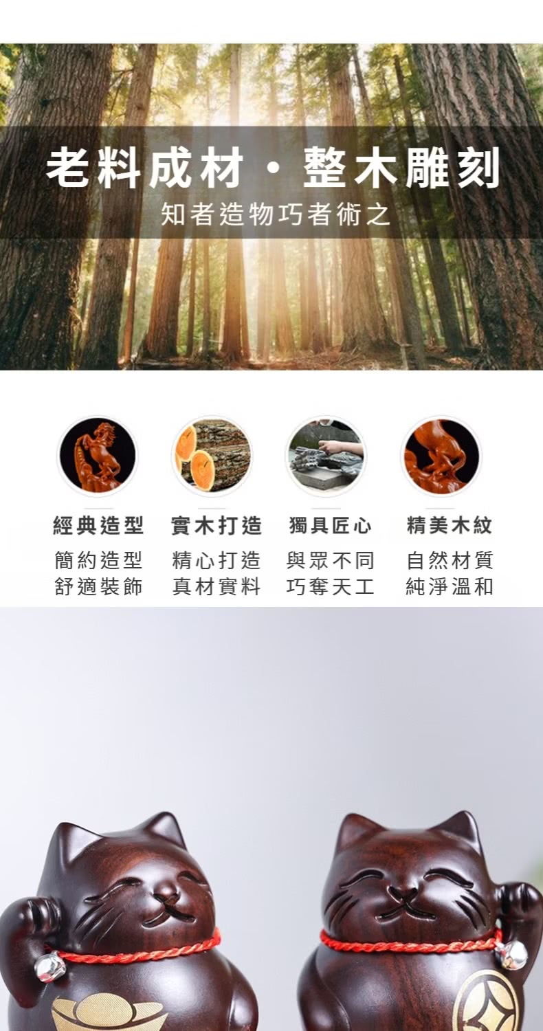 【送禮首選】招財貓實木雕刻工藝品套組(黑檀木 擺件 禮品 居家 精美 櫃台 收銀 長輩 作客 房間 客廳)